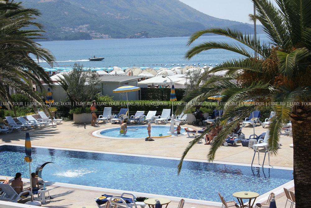 Montenegro Beach Resort Черногория — современный комфортабельный отель, удобно расположенный рядом с живописной набережной, у собственного песчаного пляжа, среди пышной тропической растительности и великолепных черногорских ландшафтов. Отель, полностью обновленный в 2005 году, располагает уютными номерами, с балконов которых открывается изумительный вид на лазурное Адриатическое море и темно-зеленые склоны гор. Гости Montenegro Beach Resort Черногория могут отдохнуть на пляже, плавая в прозрачном море или занимаясь водным спортом, снять стресс и насладиться СПА процедурами в Оздоровительном центре с крытым бассейном, саунами и фитнес-залом, окунуться в прохладу бассейнов, посетить уютные бары и рестораны с превосходной и разнообразной кухней, развлечься в ночном клубе или на дискотеке в пляжном баре. Для деловых встреч в отеле имеются 3 конференц-зала различной вместимости и бизнес-центр.