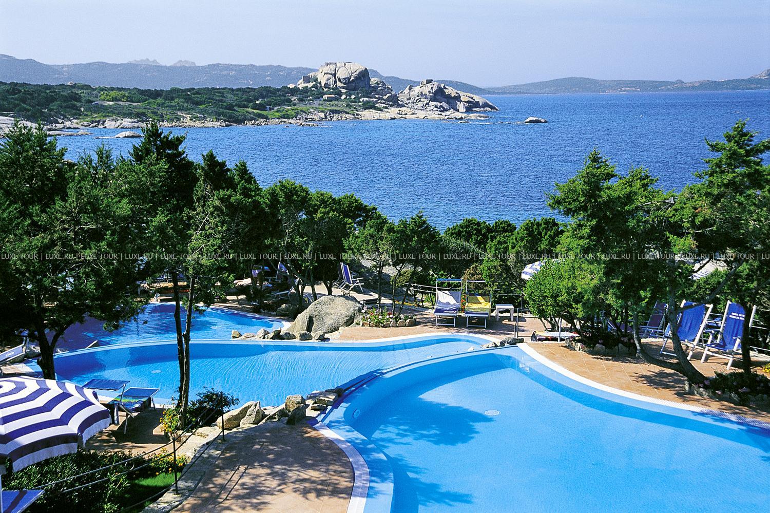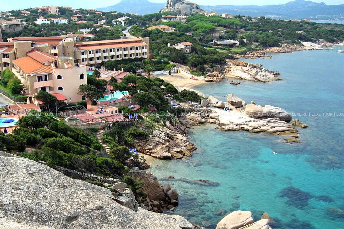 Отель расположен в центре курортного городка Байя Сардиния, на северо-востоке острова. Трехэтажное здание построено в сардском стиле. Территория террасами спускается вниз к пляжу, испещрена лесенками, мощеными дорожками, цветниками и керамическими кувшинами, украшающими естественный дизайн. В отеле отдыхает много семей с детьми. Поэтому о бронировании номеров следует позаботиться заранее. Здесь есть открытый бассейн с джакузи, собственный пляж и уютные рестораны.