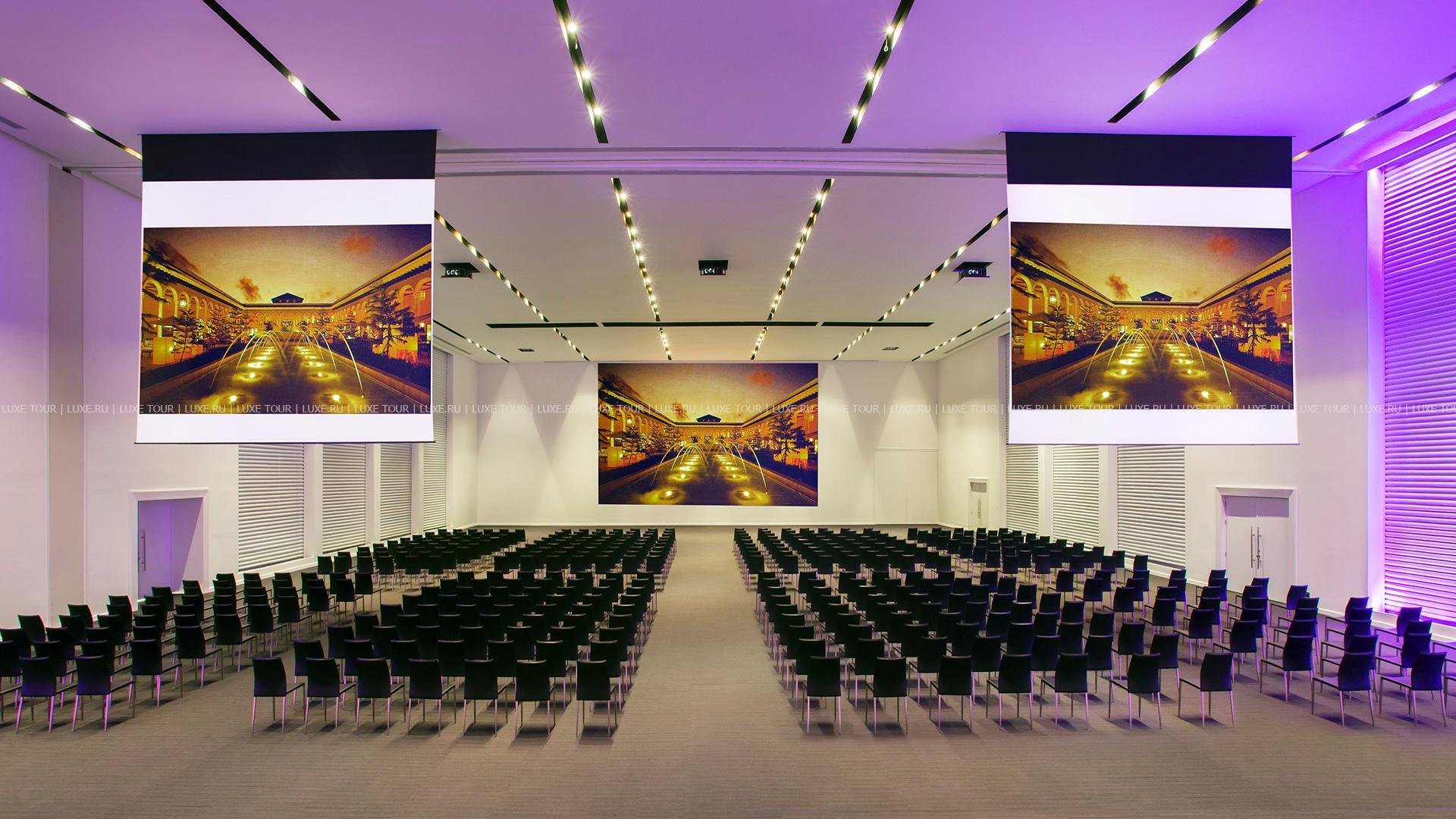 Для гостей — 12 залов для заседаний и банкетов, просторный бальный зал, магазины, библиотека, автомобильная парковка, аренда автомобилей, услуги прачечной и химчистки.