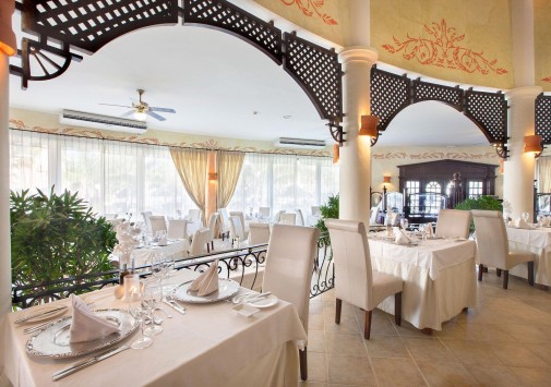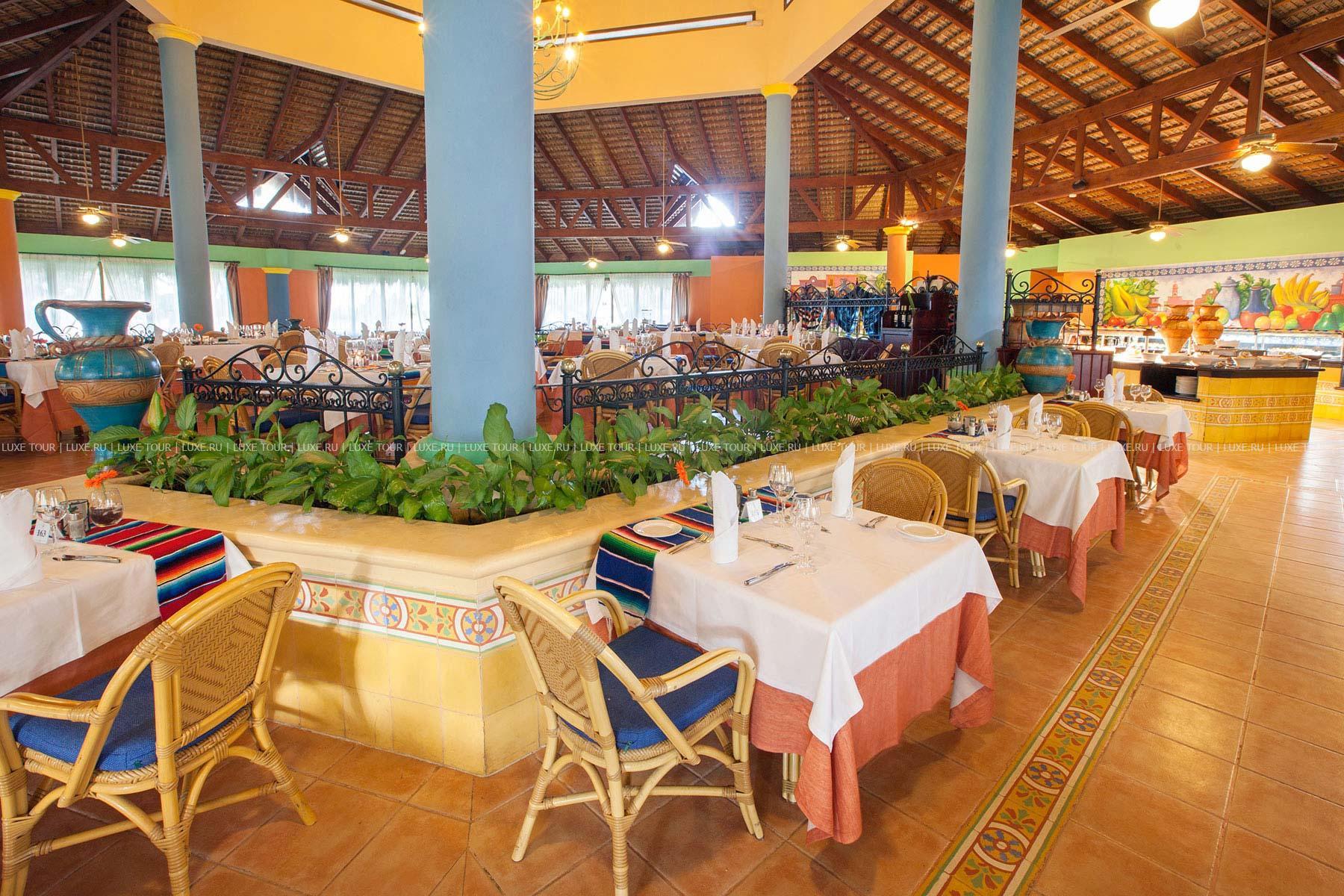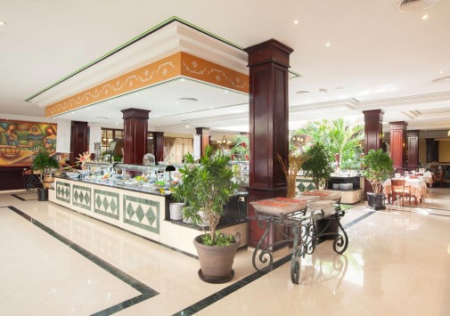 В главном ресторане отеля сервируют обильный шведский стол и устраивают тематические ужины в мексиканском, азиатском и испанском стилях.
