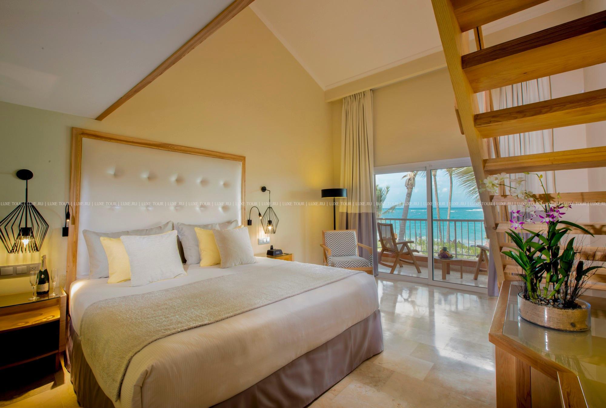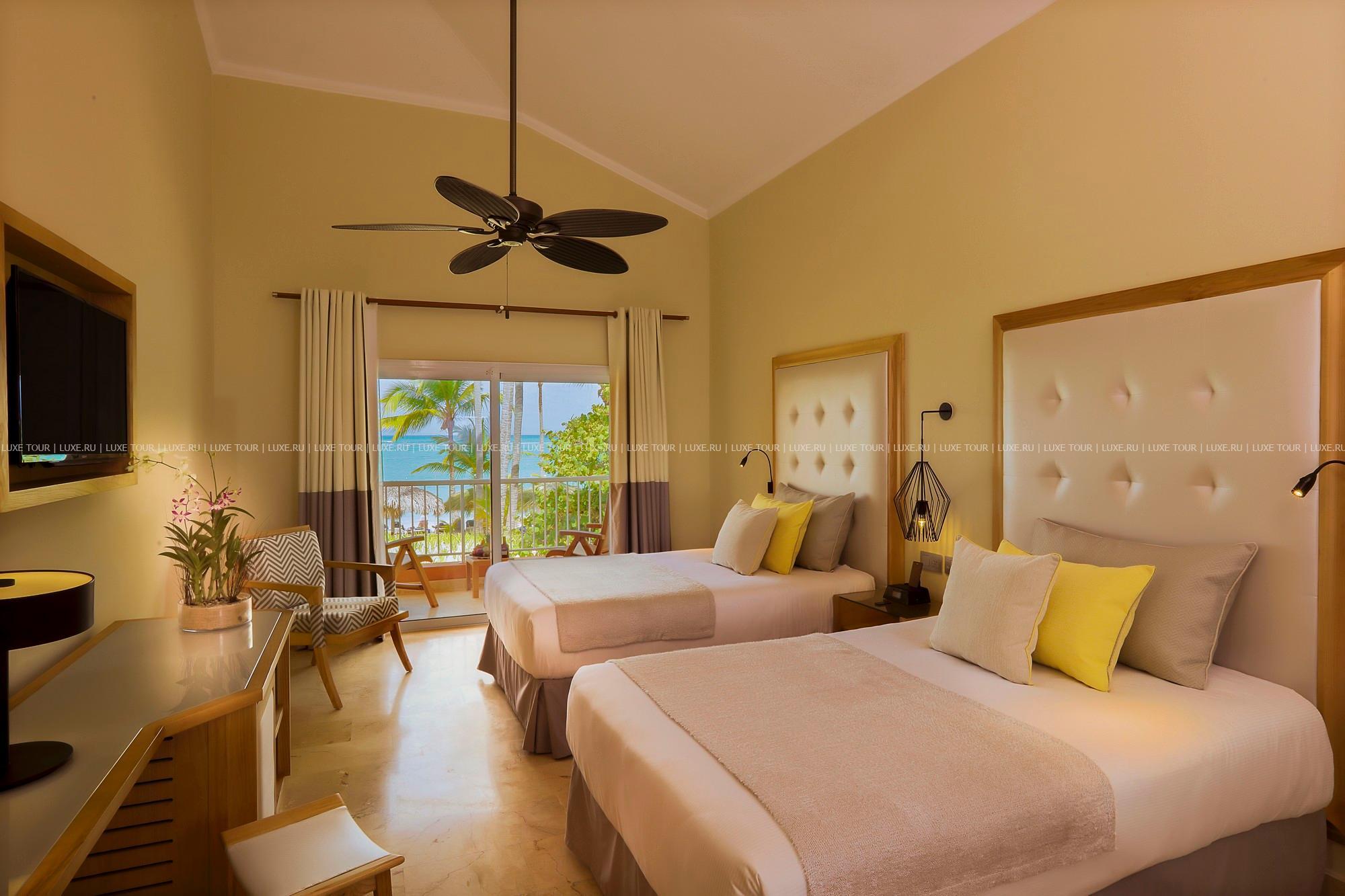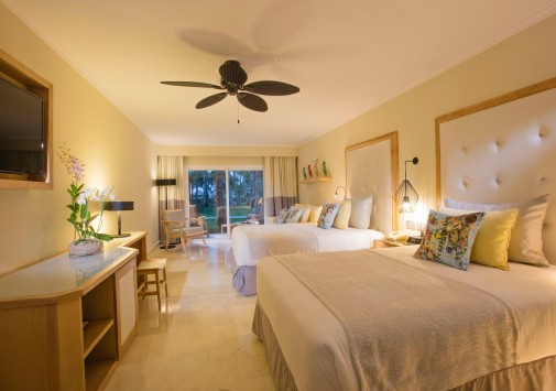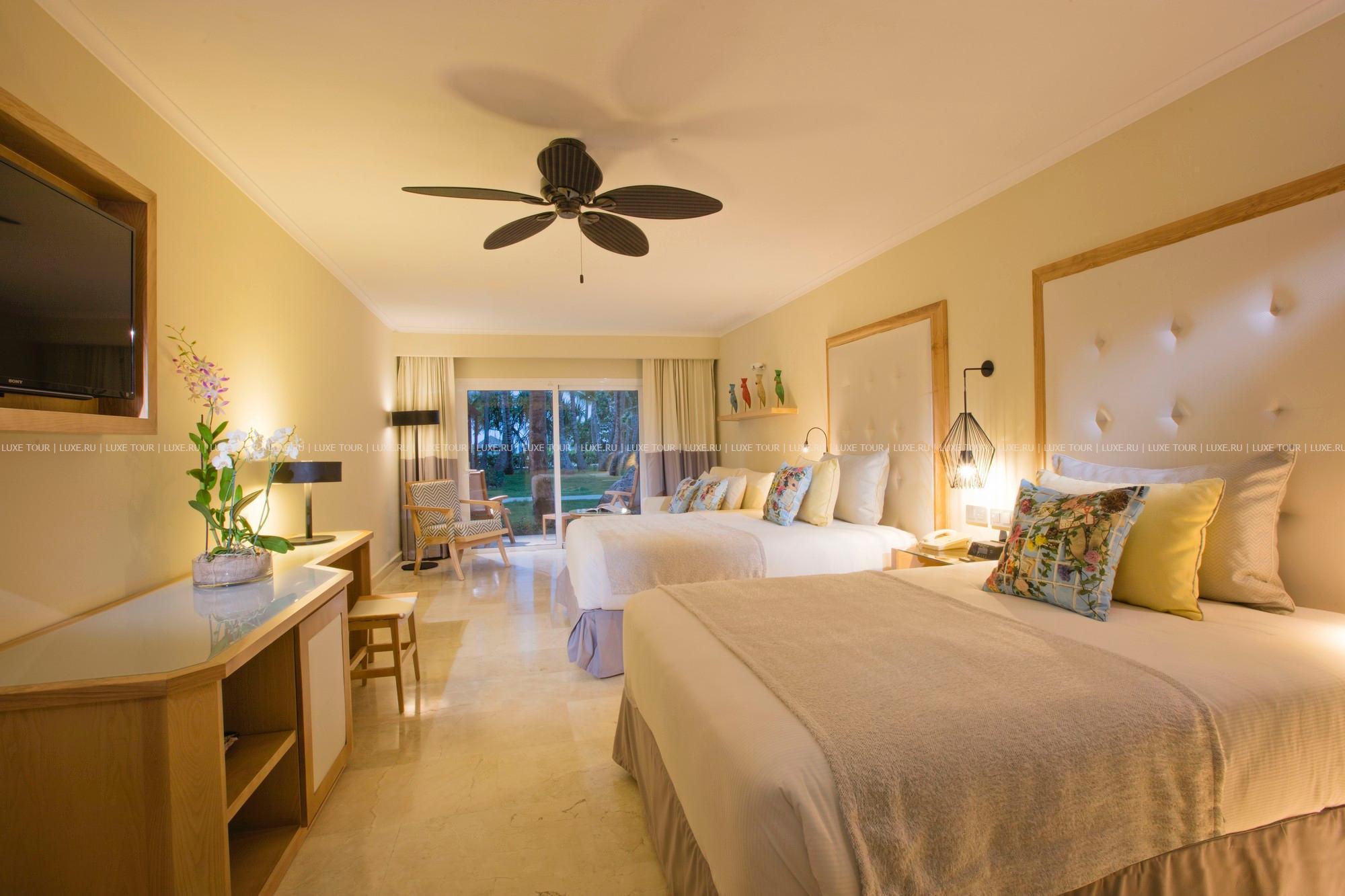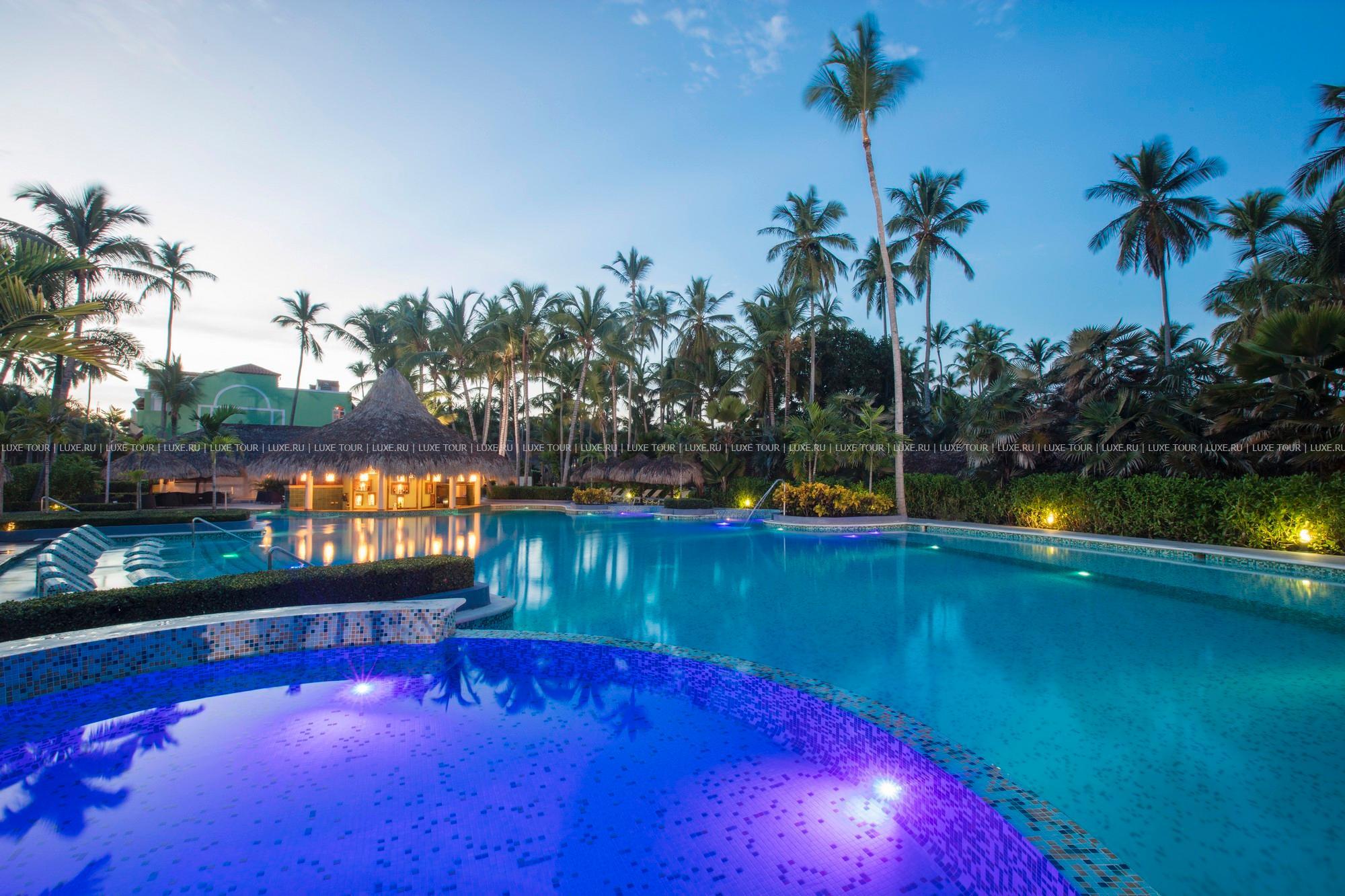 Белоснежные коттеджи отеля Grand Palladium Palace Resort Доминикана разместились в тропическом саду площадью 200 тыс. м2, возле знаменитого пляжа Playa Bávaro, на доминиканском курорте Пунта-Кана, омываемого лазурными водами Карибского моря.