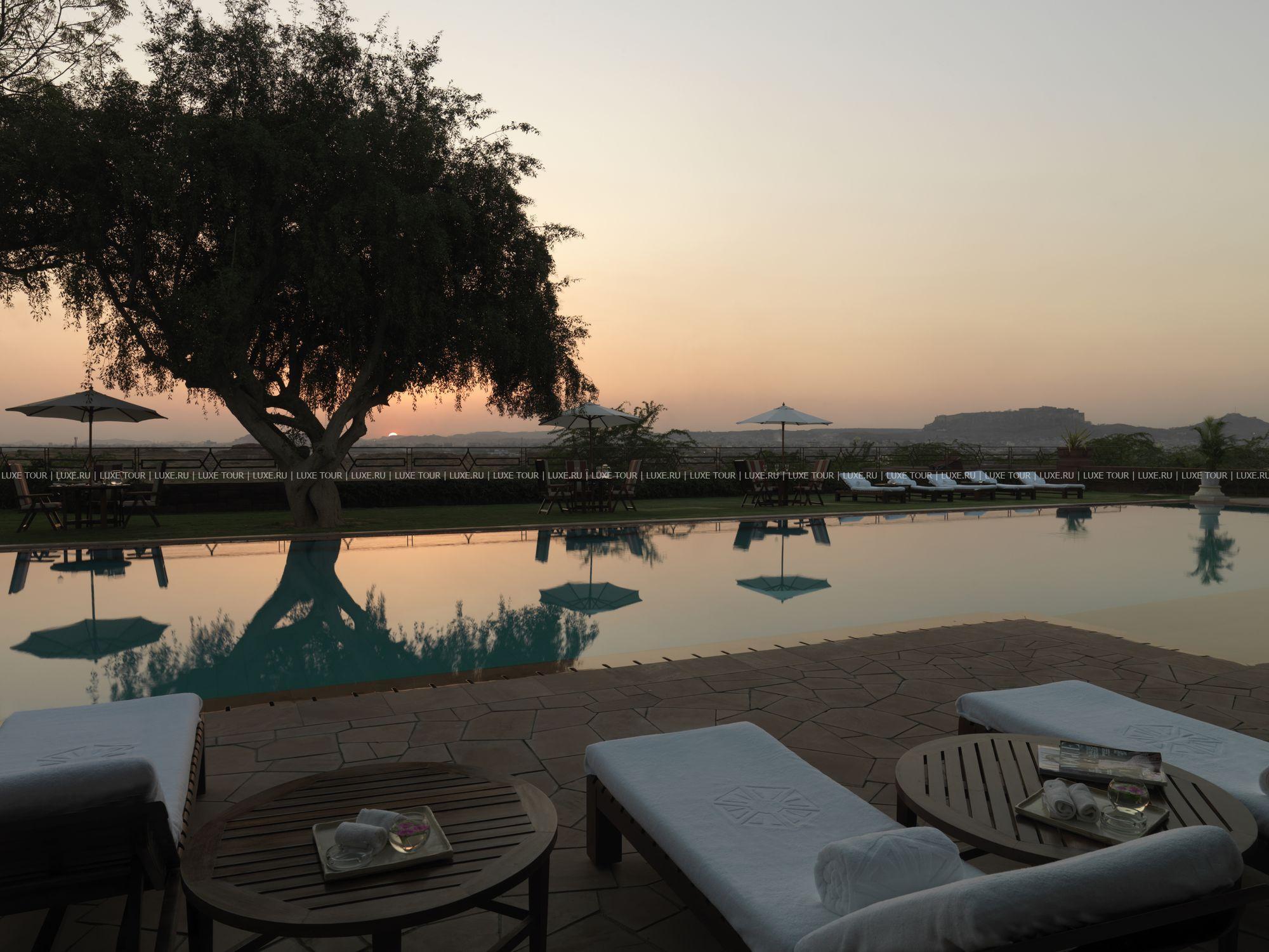 Бассейн, настольный теннис, корт для игры в сквош, теннисные корты, тренажерный зал, верховая езда, гольф, поло, крокет. Организуются экскурсии в пустыню и в близлежащие деревни, обзор многочисленных индуистских достопримечательностей.