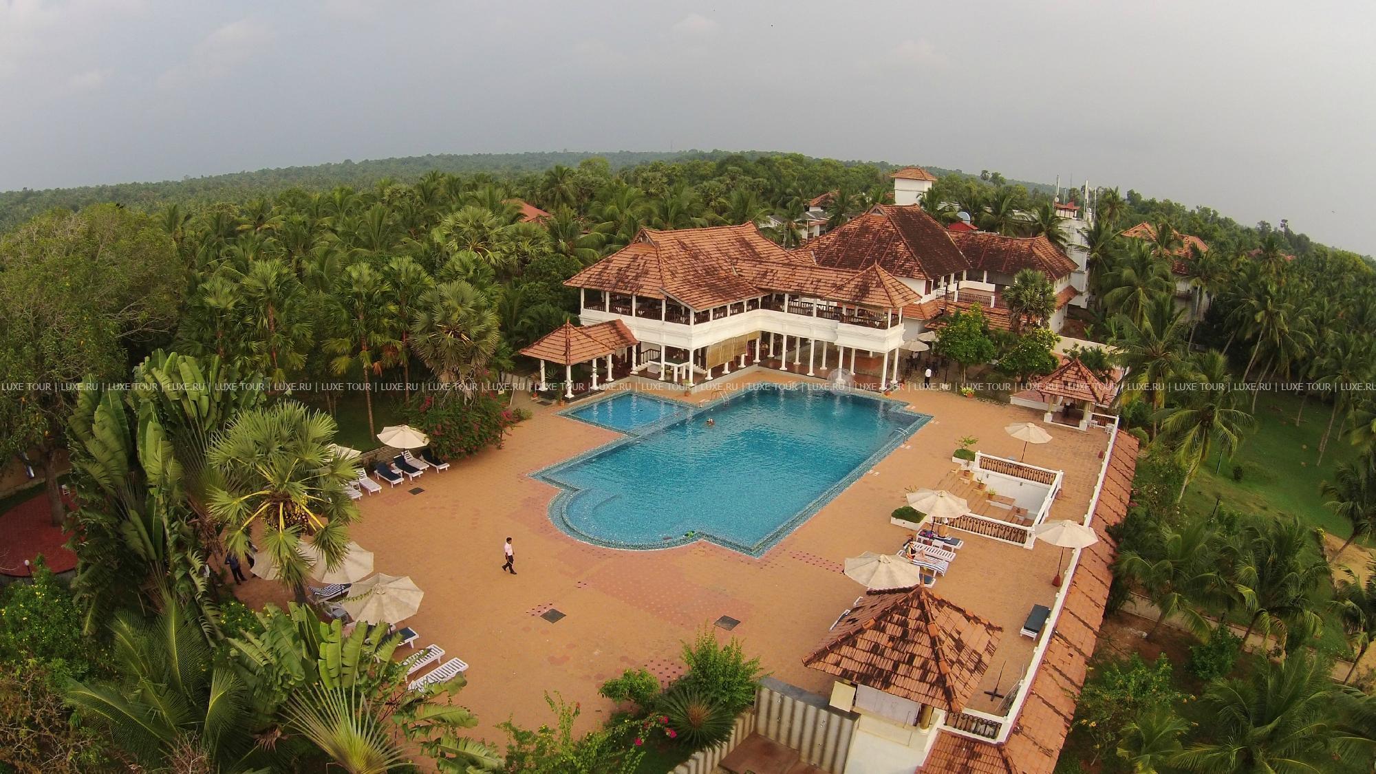 Отель расположен в прибрежном районе штата Керала, в районе пляжа Ковалам и поймы реки Пувар, на живописном полуострове, получившем название «остров кокосовых орехов». Отель со всех сторон окружен водой – с одной стороны простирается речная гладь реки Пувар, а с другой – Аравийское море. Комплекс коттеджей и бунгало, построенных в традиционном керальском стиле, раскинулся на территории в 30 акров в окружении величественных кокосовых рощ, а гости могут наслаждаться видами речных берегов, морских пейзажей, прудов и заводей. Отель располагает полностью оборудованным аюрведическим центром, ресторанами, барами и всеми условиями для полноценного отдыха.