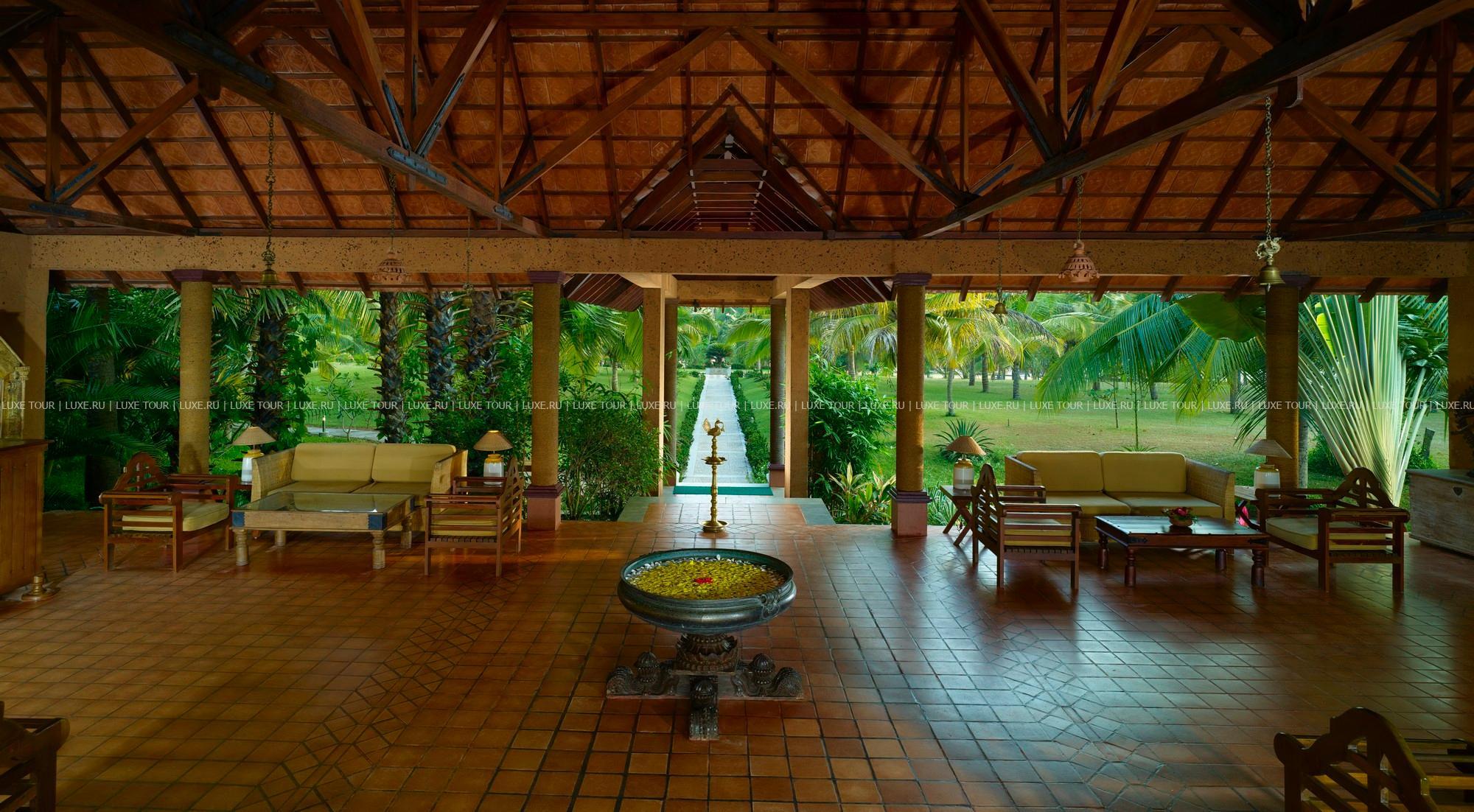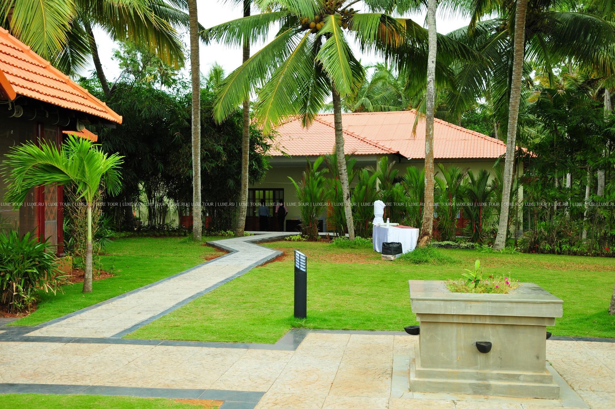 Отель расположен в юго-западной части штата Керала, на берегу Аравийского моря, l и представляет собой комплекс коттеджей, часть из которых «плавает» на воде на соединенных с берегом платформах, а часть скрыта от посторонних глаз густыми зарослями тропической зелени на берегу. Все коттеджи построены их природных материалов и декорированы в традиционном керальском стиле. Любители эко-туризма и полного слияния с природой могут остановиться в специальных эко-коттеджах, где вместо кондиционера освежает воздух океанический бриз, а листья пальм скрывают от солнца. Территория отеля в 22 акра изобилует зелеными лужайками, буйными тропическими зарослями и удивительно живописными дорожками и заводями.