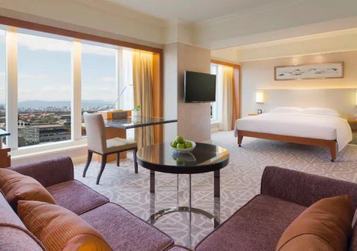 Элегантное, сверкающее зеркалами окон, полукруглое здание Grand Hyatt Beijing расположено в центре Пекина, рядом с Запретным Городом, площадью Tiananmen, Национальным Музеем Китая и другими достопримечательностями города. В комфортабельных номерах отеля – стильные современные интерьеры, с ковровым покрытием на полах, удобной мебелью, изысканными украшениями, панорамными, от пола до потолка, окнами, из которых открывается чудесный вид на Chang An Avenue, Запретный Город и южную часть Пекина. Отель располагает оздоровительным центром Club Oasis, включающим спа, сауну, парную, и процедурные кабинеты, предлагающие широкий спектр услуг по уходу за здоровьем и внешностью, также здесь находится фитнес-центр с оборудованным тренажерным залом. Кроме того, в Grand Hyatt Beijing имеется уникальный, выполненный в тропическом стиле, крытый бассейн. Рестораны и бары отеля предлагают превосходный выбор кулинарных направлений: традиционные блюда северных и южных провинций Китая, разнообразие блюд интернациональной кухни. В барах Grand Hyatt Beijing предложены напитки на любой вкус, а вечерами звучит живая музыка. Конференц-центр отеля с залами для заседаний и банкетов идеально подходит для проведения любых мероприятий.
