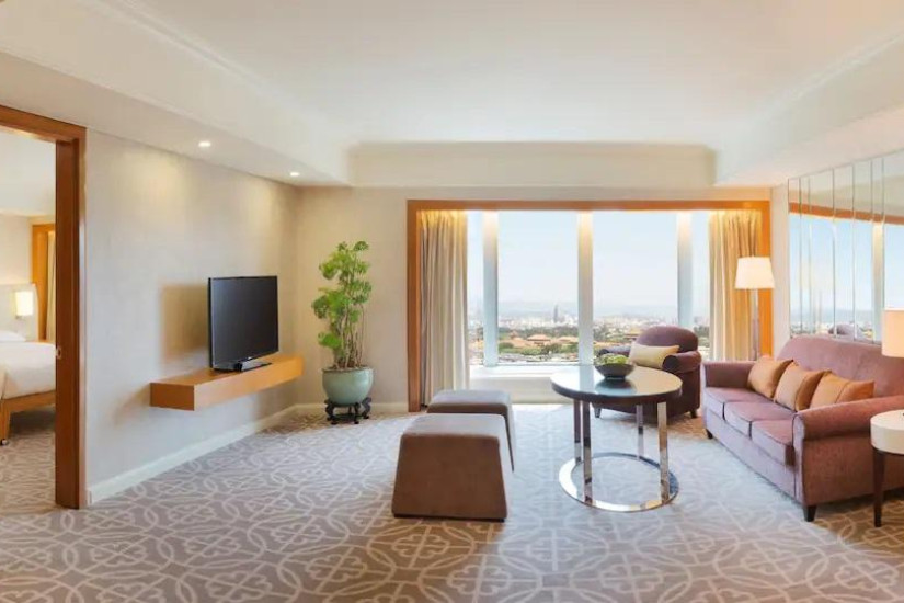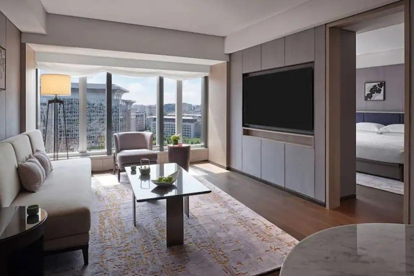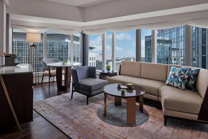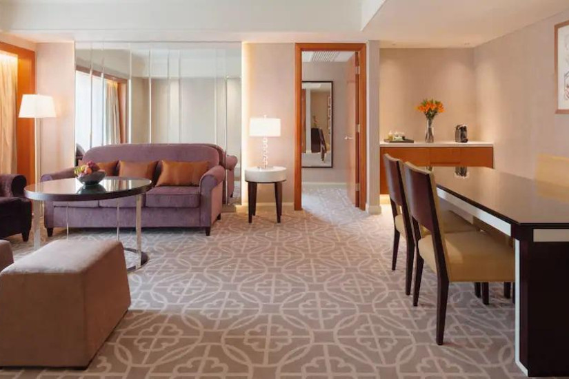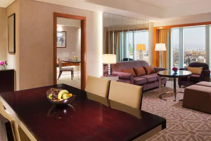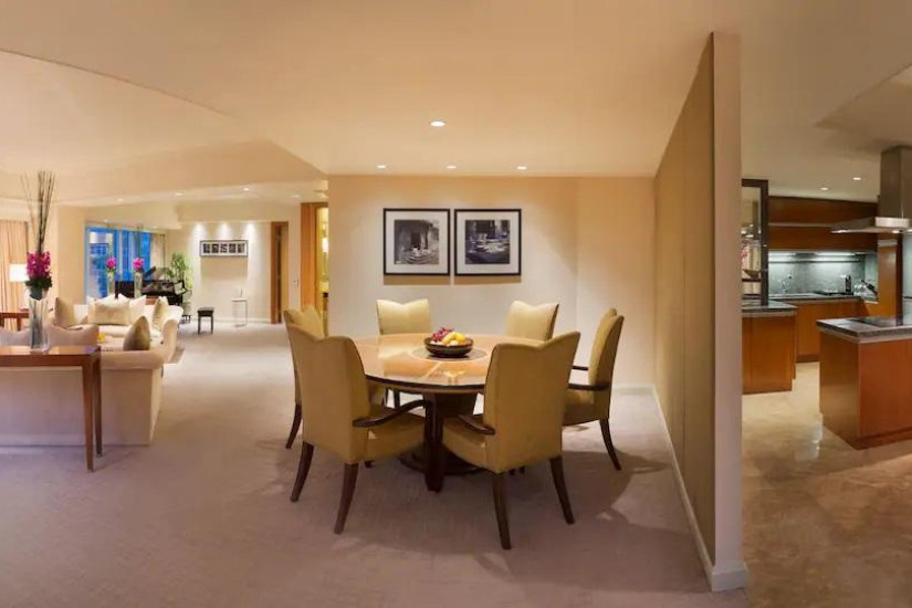 - 260 м2. Двухуровневый номер, состоит из спален с кроватью king-size, просторной гостиной с камином и большими, от пола до потолка, окнами, кабинета, обеденной зоны и кухни, гардеробной, ванной комнаты с массажным кабинетом, джакузи, сауной и отдельной туалетной комнаты. Гостям номера предоставляются услуги дворецкого и привилегии лаундж-зоны Grand Club. Максимальное размещение – 5 человек.