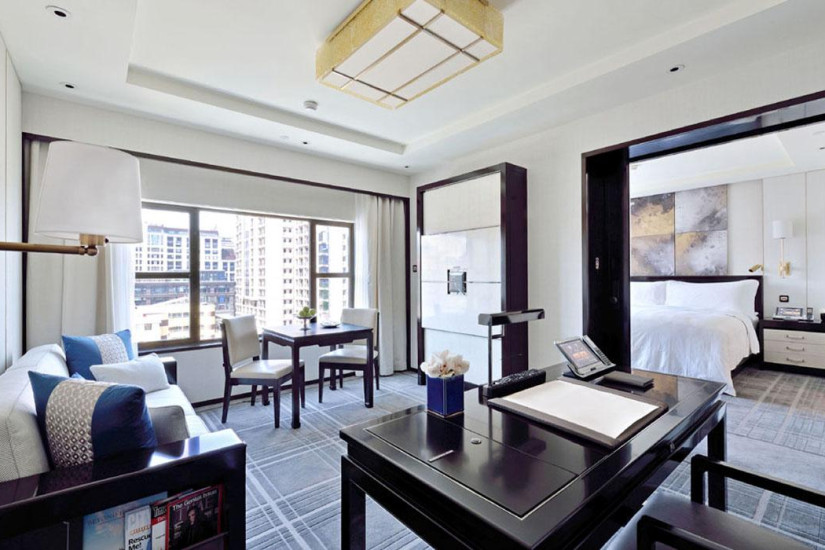 - В отеле 230 комфортабельных номеров различных категорий. В номерах – стильные интерьеры в теплых тонах, с ковровым покрытием на полах, изящной мебелью, изысканными украшениями, большими, во всю стену, окнами, из которых открывается панорамный вид на Пекин.