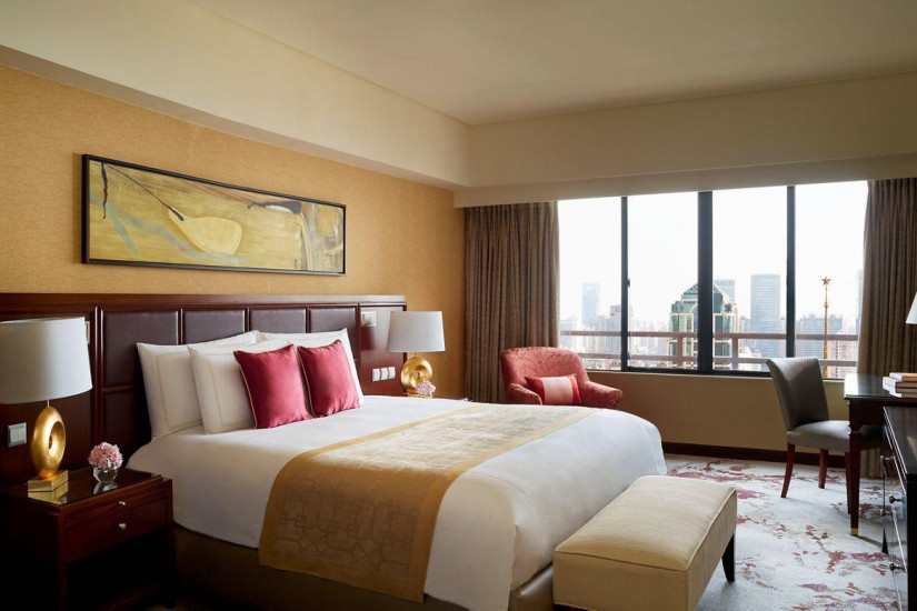 В отеле 578 комфортабельных номеров различных категорий, включая Deluxe Room, Premier Room, Shanghai Room, Club Deluxe Room, Shanghai Premier Room, Club Business Studio, Premier Suite, Club Premier Suite, One Bedroom Penthouse Suite, Hospitality Suite, Two-Bedroom Penthouse Suite, The Ritz-Carlton Suite. В номерах – элегантные классические интерьеры в теплых тонах, с ковровым покрытием на полах, изящной мебелью из красного дерева, изысканными произведениями искусства работы современных китайских авторов.