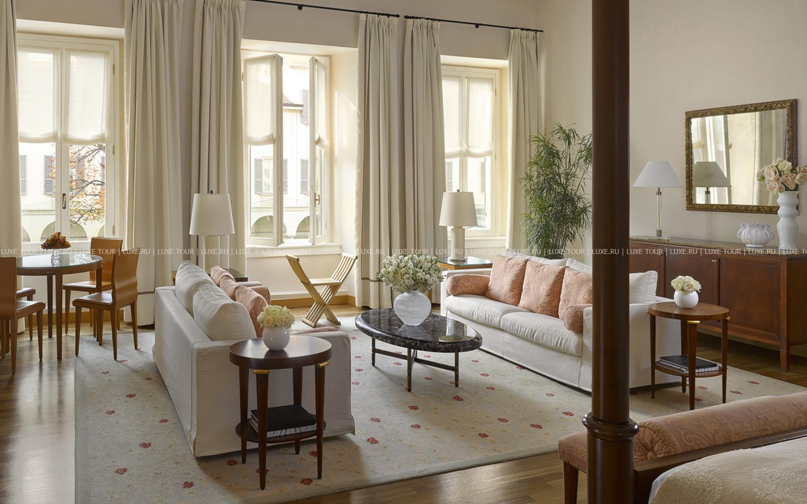 Комфортабельный Four Seasons Hotel, расположенный рядом с фешенебельными улицами со знаменитыми дизайнерскими магазинами, театром Ла Скала и Дуомским собором, отражает атмосферу уединенности и спокойствия монастыря XV века, архитектуру которого отель сохранил в сочетании с самыми современными тенденциями. Отель предлагает многообразие великолепных номеров, интерьеры которых индивидуальны и оригинальны, а стильная обстановка сочетается с антикварными предметами мебели.