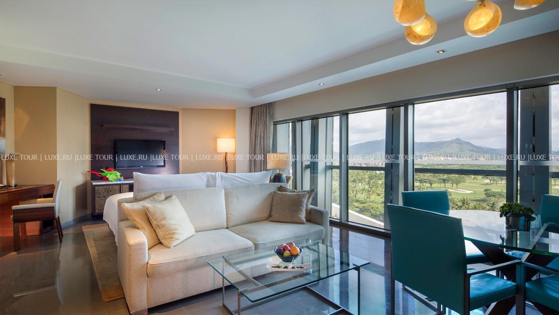 У пляжа с жемчужным песком и прозрачных вод залива Дракона раскинулся MGM Grand Sanya Китай. Фешенебельный отель, окруженный пышными садами, восхищает высочайшим уровнем сервиса, ультрасовременным оснащением и шикарным дизайном. Гостей ждет не только незабываемый отдых, но и масса новых впечатлений. Элегантные, оснащенные по последнему слову техники номера с потрясающим видом на море и сады, и роскошные виллы с персональными бассейнами. Лазурные бассейны для детей и взрослых, великолепный спа-центр, предлагающий эксклюзивные процедуры, фитнес-центр, центр водного спорта и живописное поле для гольфа. Многочисленные рестораны рассчитаны на искушенных гурманов - здесь в стильных интерьерах можно отведать деликатесы разных стран, а лучшие вина выбрать с помощью приложения на iPad. В барах предлагаются не только первоклассные напитки, но и яркие шоу, живая музыка и даже фокусы. Ночной клуб отеля - одно из самых популярных заведений на курорте.