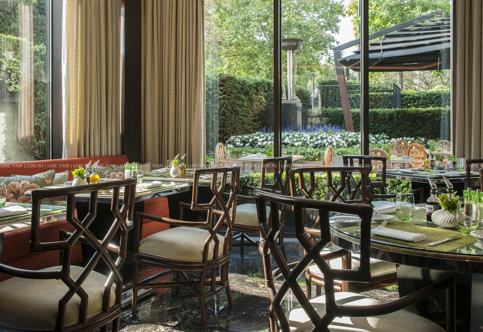 • В шикарных, выдержанных в красных тонах интерьерах Amaranto Restaurant, предлагаются изысканные блюда итальянской кухни, подаваемые в английском стиле. Ресторан располагает чудесной открытой террасой в саду, с видом на Park Lane, и банкетным залом на 8 мест.