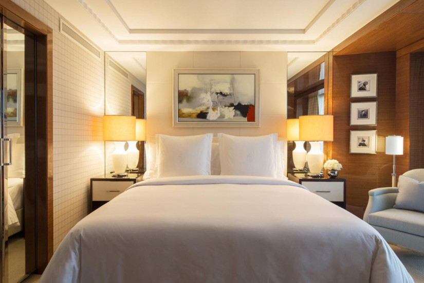 - 112 м2. Состоит из спальни с кроватью king-size, гостиной с камином и обеденной зоной, гардеробной, ванной комнаты и душевой кабиной, гостевой туалетной комнаты. Номера располагаются с 6 по 8 этаж. Вид на город. Максимальное размещение - 3 взрослых или 2 взрослых + 2 ребенка. Возможно присоединение дополнительной спальни.