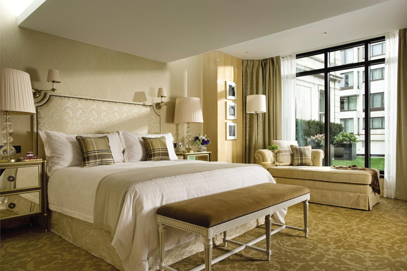 - 103 м2. Состоит из с пальни с кроватью king-size, гостиной с камином и обеденной зоной, гардеробной, ванной комнаты с ванной и душевой кабиной, гостевой туалетной комнаты. Номера располагаются с 3 по 4 и с 6 по 7 этаж. Вид на город, Парк Лейн и Гайд-парк. Максимальное размещение - 3 взрослых или 2 взрослых + 2 ребенка. Возможно присоединение дополнительной спальни.