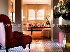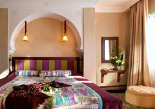 Отель расположен недалеко от центральной части города, в непосредственной близости от подножия Атласских гор. Охристое здание, построенное в полном соответствии с канонами традиционного марокканского стиля, утопает в зелени огромного парка. Геометрический рисунок приветливых аллей, лазурь бассейна, декоративные мостки, небольшие островки, классические беседки, цветочные клумбы и буйство растительной экзотики, словно бы связывающий парковый ансамбль воедино – здесь гости будто бы соприкасаются с миром сказочного востока, описанного в старинных легендах.