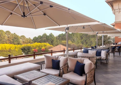 - Ресторан и бар Living Room с открытой террасой и видом на живописный сад и бассейн представляет блюда и напитки «здорового меню».