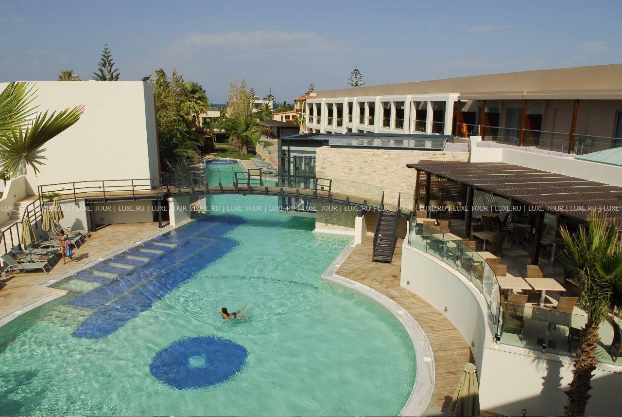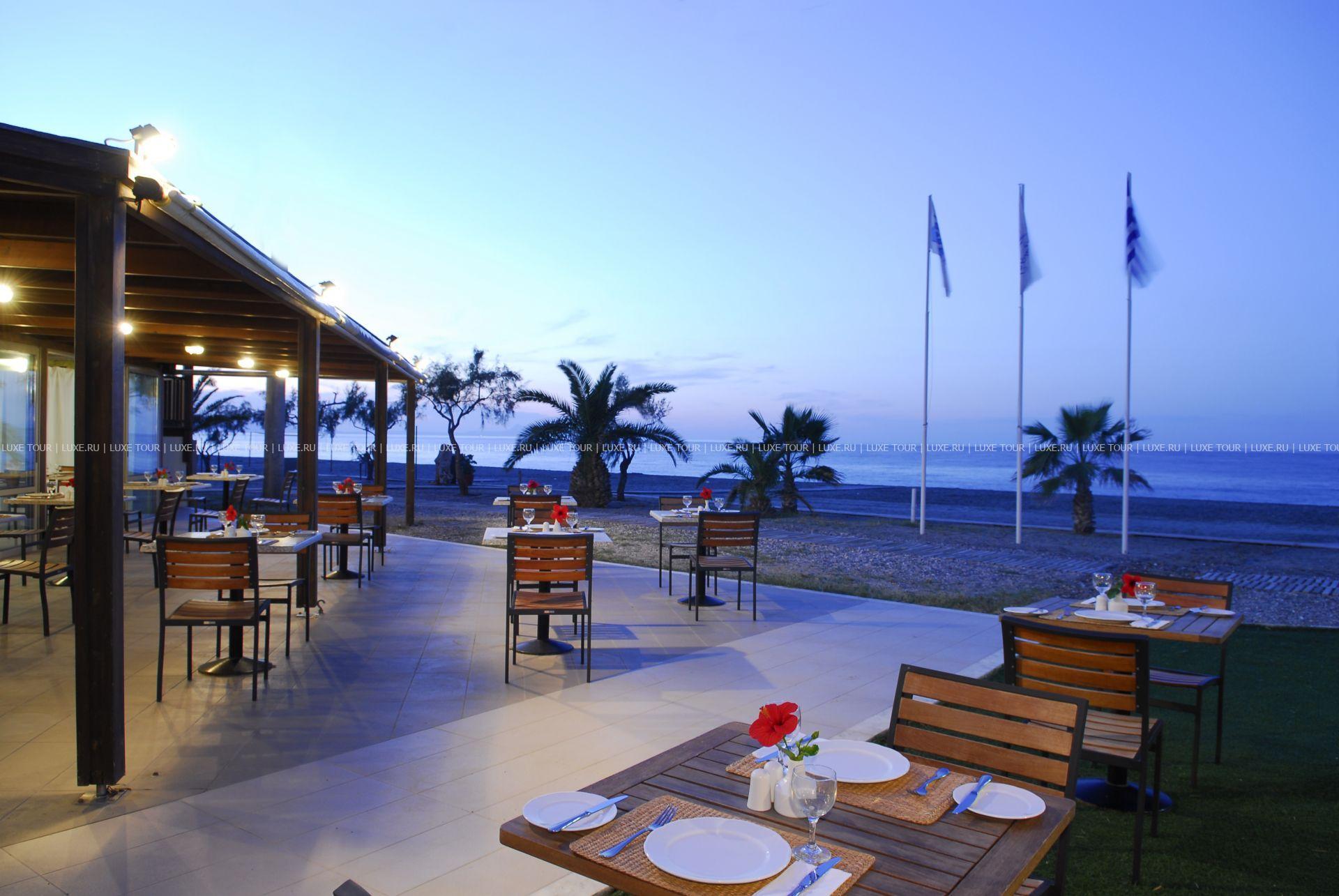 Отель расположен у собственного оборудованного песчаного пляжа Platanias, отмеченного «Голубым флагом».