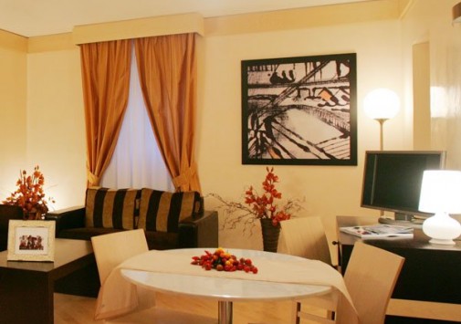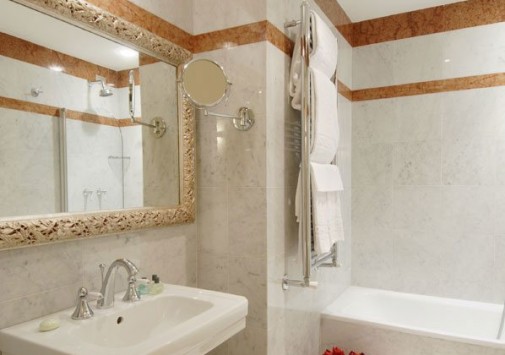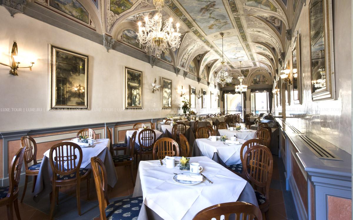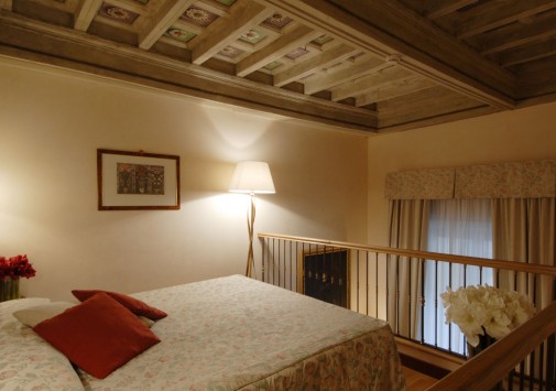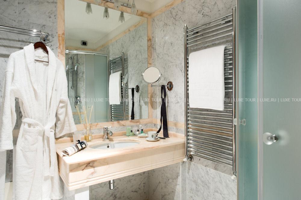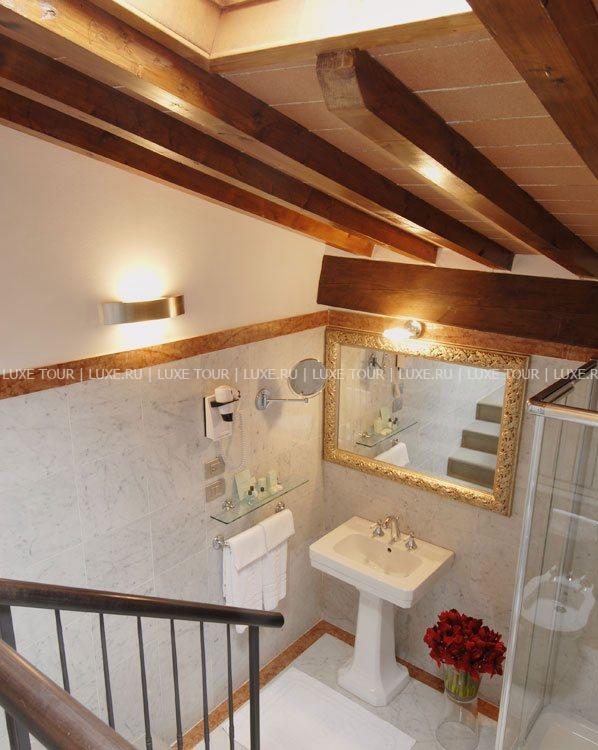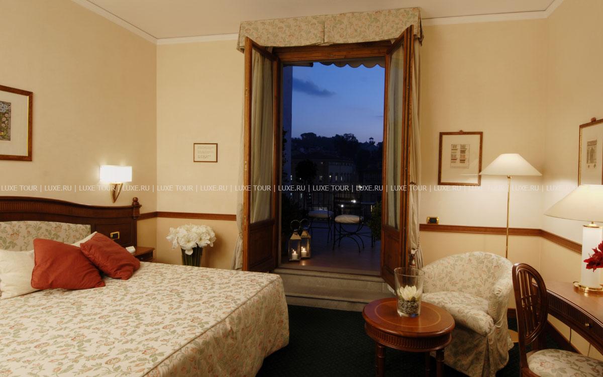 Здание гостиницы идеально вписано в общий стиль исторического центра и составляет важную его часть: скромный фасад с его воздушными арками, элегантными балконами и торжественным подъездом соотносится с элегантным полным необъяснимого шарма убранством номеров. Интерьеры холлов и номеров украшены предметами искусства, антикварными вещицами и всевозможными мелочами, играющими важную роль в создании неповторимой атмосферы помещений: роскошные зеркала, гербовые знаки, расписные потолки, грациозные люстры, живописные ковры, старинные книжные шкафы, оригинальные вазы и многое другое. К услугам гостей отеля гостиная, где предлагаются завтраки, и American Bar, где сервируют разнообразные закуски и напитки.