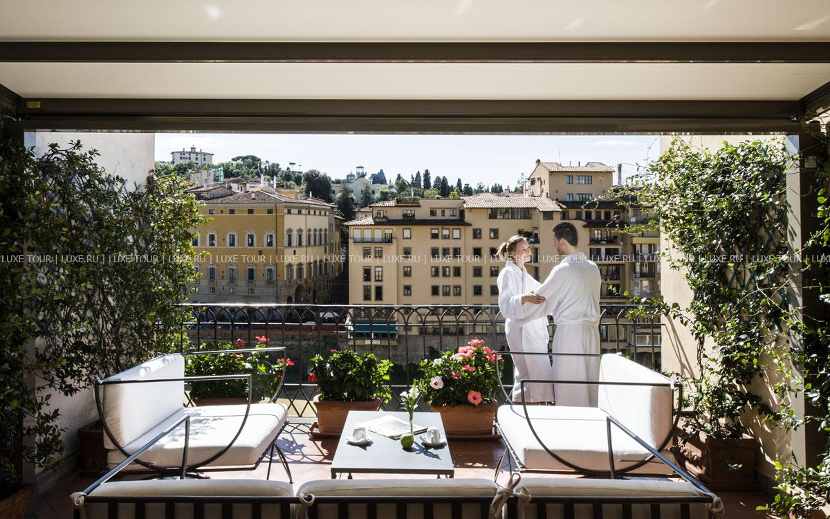 Расположенный в центральной части города на набережной реки Арно, Archibusieri, Hotel Degli Orafi погружает гостей в удивительный манящий мир средневековой Флоренции. Узкие мощеные улицы, старинные фасады зданий, элегантные каркасы мостов, набережные, мраморные церкви и словно выступающее с ними в гармоничном ансамбле голубое итальянское небо — приглашают гостей в один из самых удивительных городов Европы. Из широких окон гостиницы и потрясающего сада на крыше вам открываются превосходная панорама города и захватывающие дух виды на культурные сокровища Флоренции: Старый мост Понте Веккьо, дворец Палаццо Веккьо и, конечно же, возвышающийся над крышами флорентийских домиков купол Санта Мария дель Фьоре.