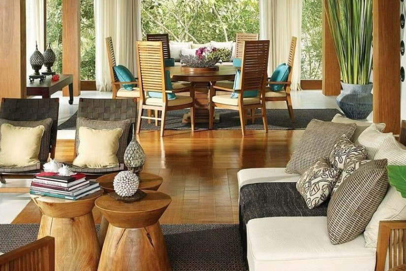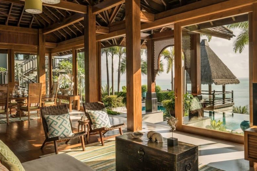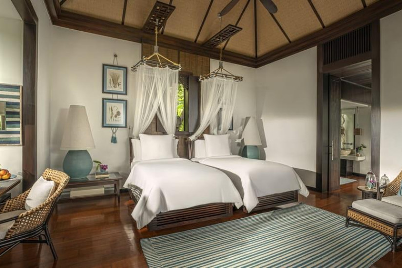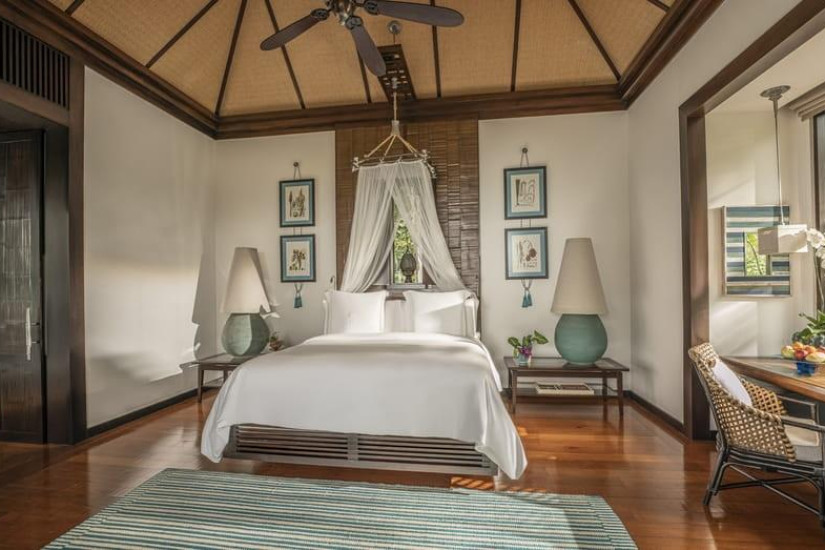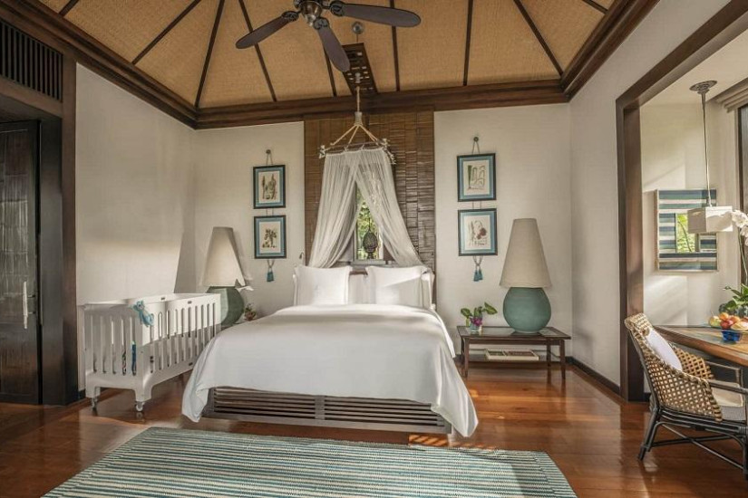 - 125 м2. Состоит из спальни с кроватью king-size, гостиной зоны, ванной комнаты, бассейна. Имеет прямой доступ к частному пляжу. Вид на Сиамский залив. Максимальное размещение — 3 взрослых или 2 взрослых и 1 ребенок.