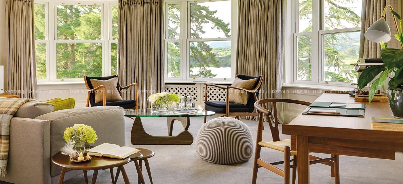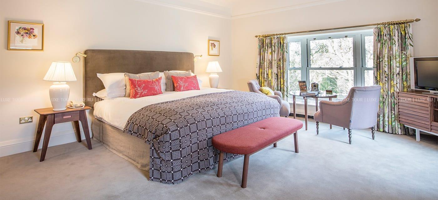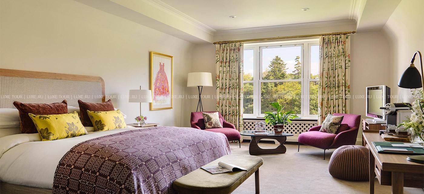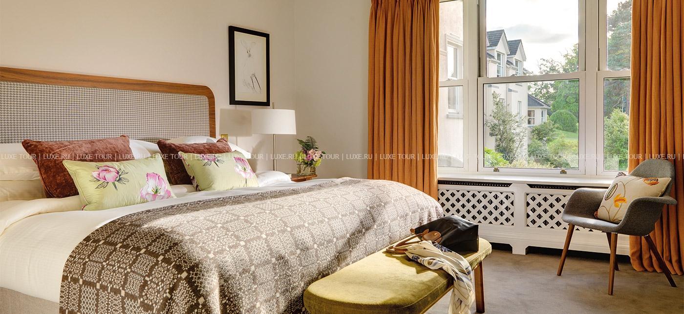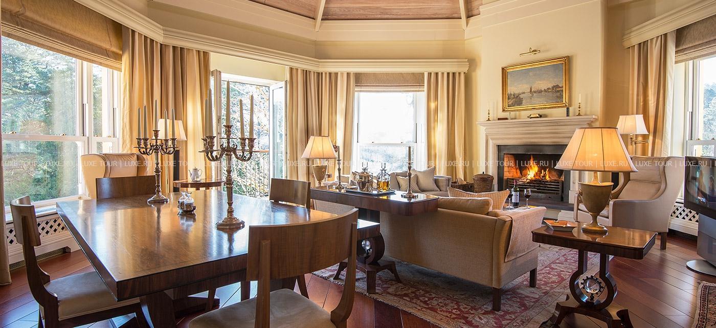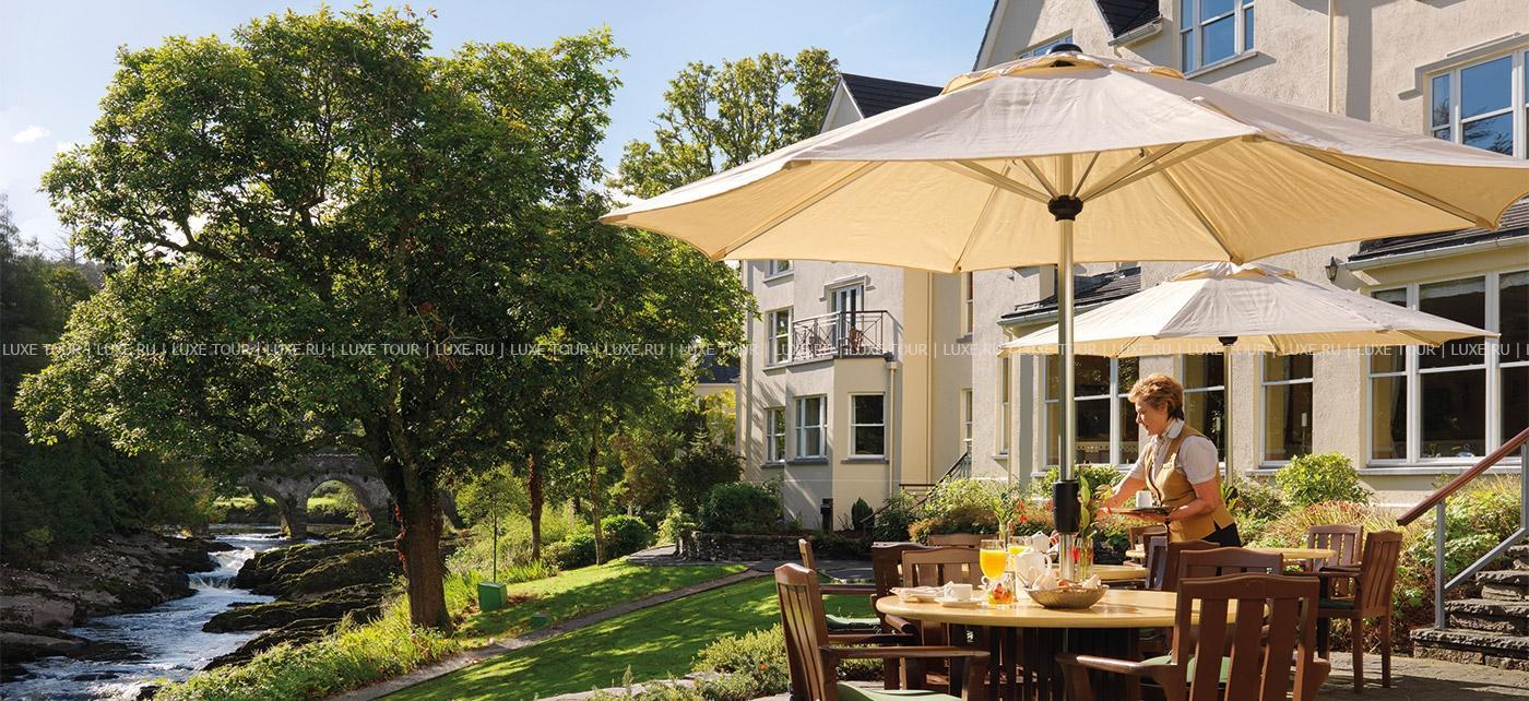 Среди изумрудных лугов и покрытых дымкой горных вершин графства Кэрри, между шумящими водопадами и сверкающими водами залива Кенмэр, на месте старинного владения XVII века, расположился Sheen Falls Lodge, сочетающий утонченную респектабельность средневекового ирландского поместья и самый современный комфорт. В уютных номерах, расположенных в основном здании отеля и отдельно стоящих коттеджах, элегантные классические интерьеры в теплых солнечных тонах, соединяющие стиль изысканного загородного дома и элементы современного дизайна. Отель располагает Оздоровительным Центром, включающим подогреваемый крытый бассейн, джакузи, парную, сауну, тренажерный зал и процедурные кабинеты, предлагающие большой выбор услуг по уходу за здоровьем и внешностью с использованием продукции линии Yon Ka, основанной на уникальной комбинации натуральных трав и эфирных масел.