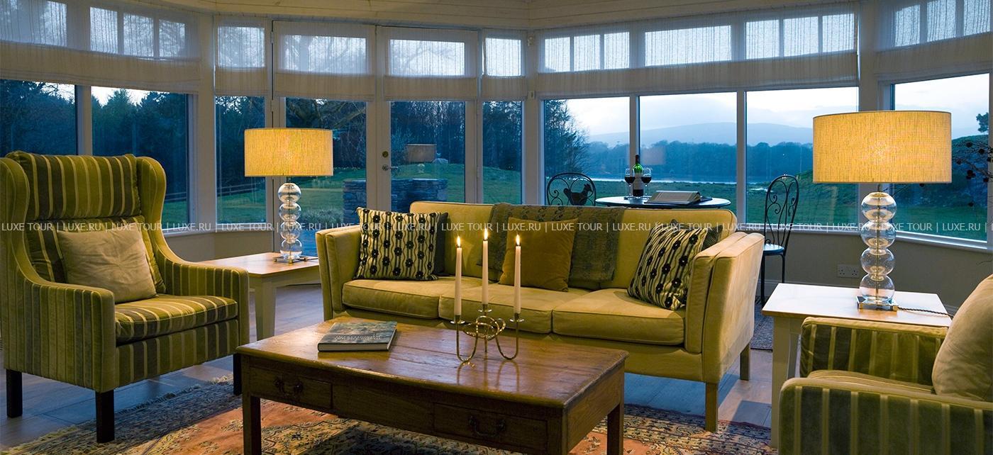 В Sun Lounge можно выпить чашечку утреннего кофе или послеобеденного чая в сопровождении аппетитной выпечки и легких закусок, а в Cocktail Bar попробовать ирландский виски 30–летеней выдержки, фирменный коктейль, выкурить ароматную кубинскую сигару и послушать живую фортепианную музыку. Гордость отеля — винный погреб, один из самых богатых в Ирландии, насчитывающий 10 000 бутылок, представленных 950 марками изысканных вин из 17 стран мира. К услугам гостей — обширная библиотека, бильярдная, бизнес–услуги, прока автомобилей, автомобильная парковка. Sheen Falls Lodge обеспечивает разнообразный отдых, уединенность и уютный комфорт среди великолепной природы древней Ирландии.