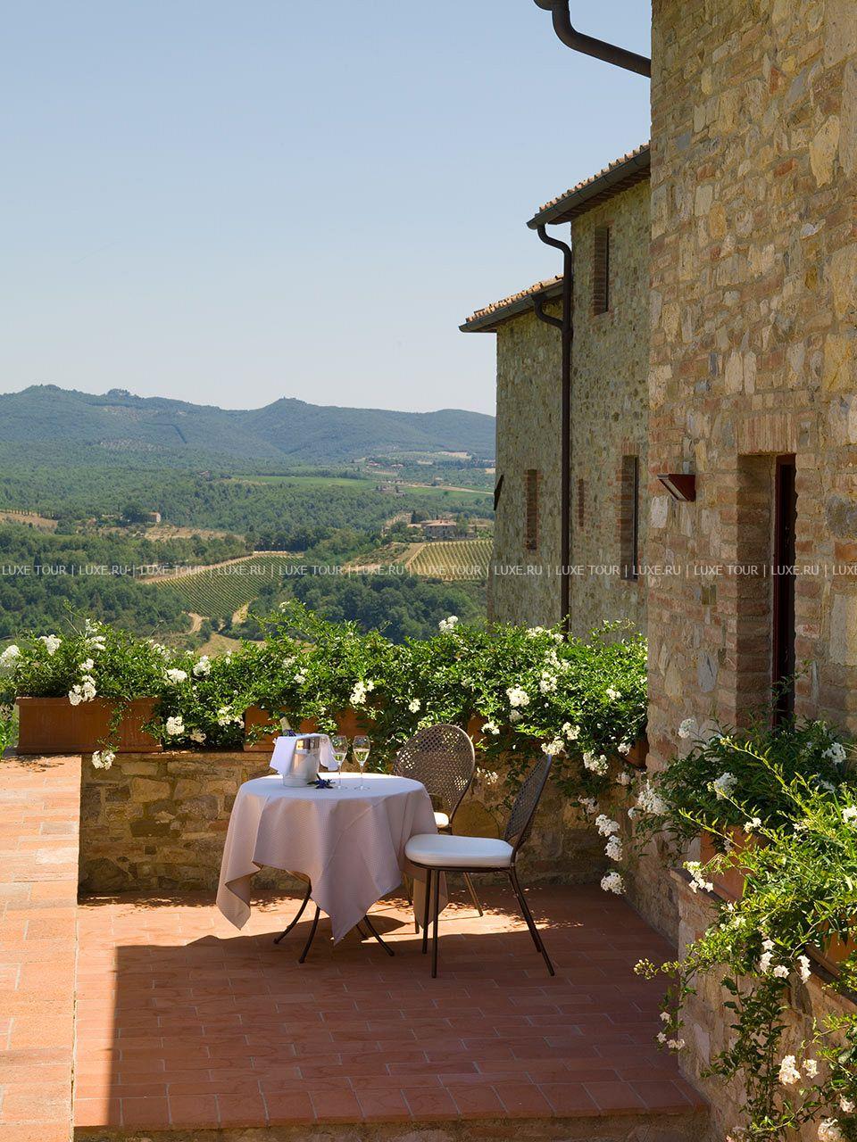 В отеле работает Оздоровительный Центр, включающий крытый бассейн, джакузи, сауну, турецкую баню, тренажерный зал, зону отдыха, есть открытый бассейн с панорамным видом на просторы Кьянти. В ресторане La Colonna предлагается меню сезонных блюд и традиционные блюда итальянской кухни. В открытом ресторане L’Orto delle Monache, расположенном у бассейна, можно отведать разнообразные блюда из рыбы и мяса, приготовленные на гриле, легкий ланч и полюбоваться окружающими пейзажами. Под старинными сводами, в прохладе The Belvedere Terrace приятно отдохнуть в романтической обстановке и выпить бокал вина из богатой карты вин.