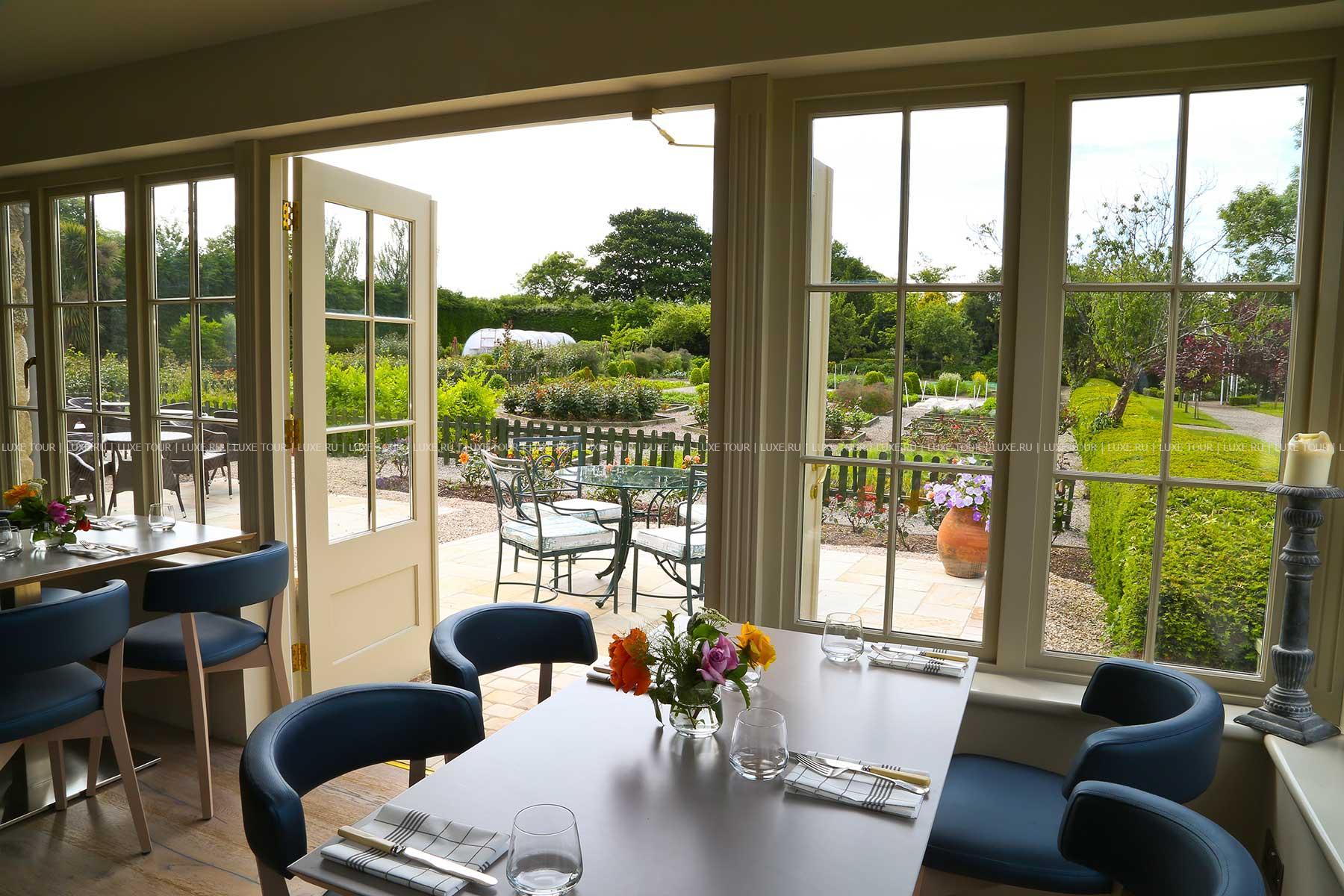 В ресторане отеля подаются блюда средиземноморской кухни, приготовленные из отборных местных продуктов: уэксфордских мидий, устриц из залива Bannow, свежайшей говядины, овощей и фруктов, выращенных в саду отеля, также гостям предлагается богатая карта вин из собственного винного погреба Marlfield House. В теплую погоду столики сервируются в живописном саду отеля.