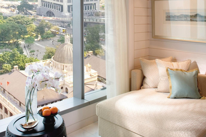 40 м2. Состоит из спальни с кроватью king-size, креслом и рабочей зоной и ванной комнаты. Панорамный вид на бухту Виктория и полуостров Коулун.