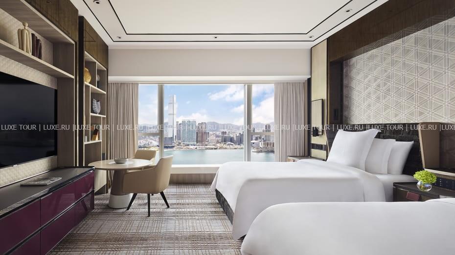 - 45 м2. Состоит из спальни с кроватью king-size или двумя кроватями twin, зоны отдыха, ванной комнаты. Вид на бухту Виктория и полуостров Коулун. Номера располагаются с 9 по 35 этаж. Максимальное размещение – 3 человека.