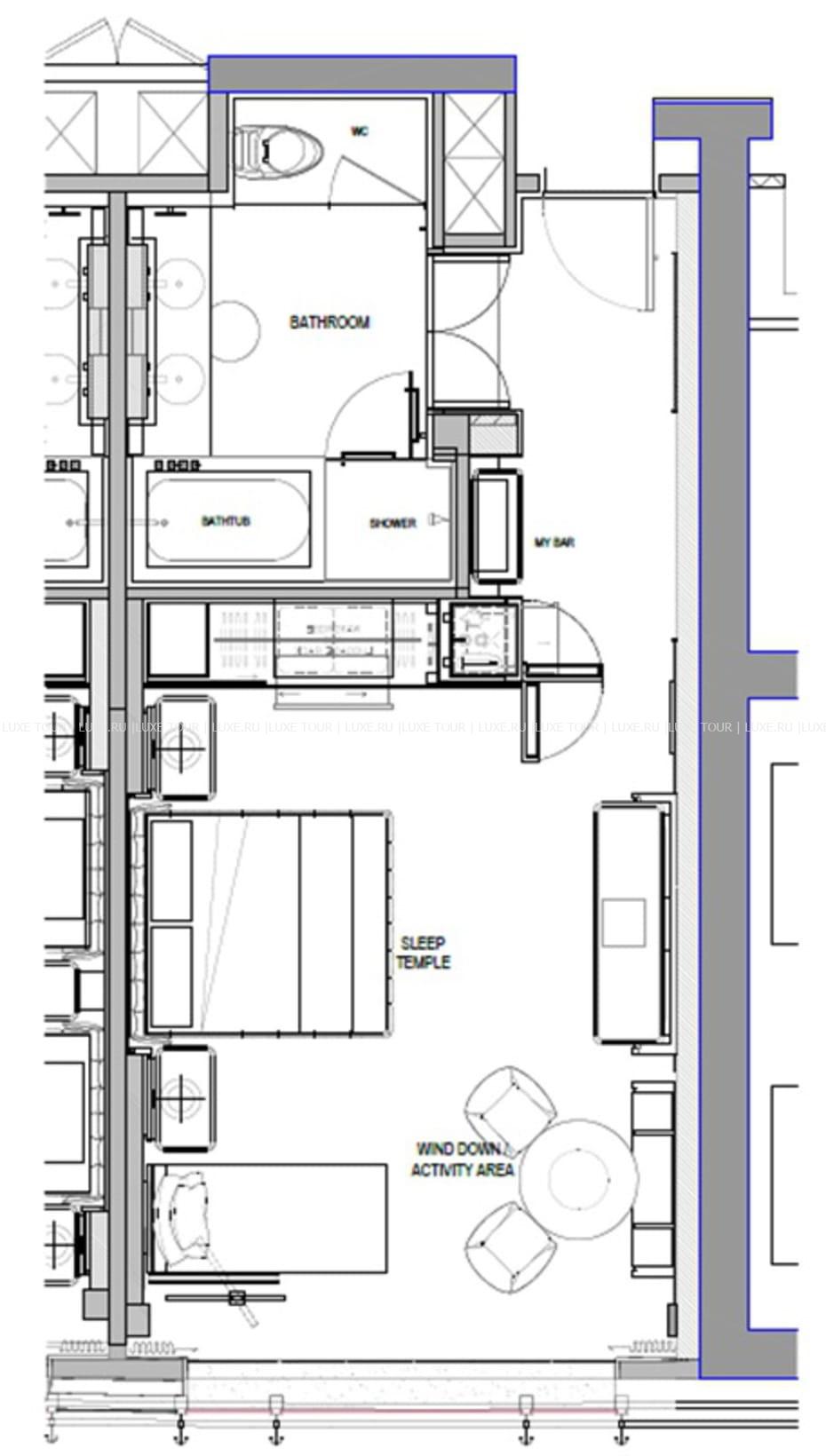 - 39 м2. Состоит из спальни с кроватью king-size, зоны отдыха, ванной комнаты. Вид на бухту Виктория. Номера располагаются с 9 по 43 этаж. Максимальное размещение – 2 человека.