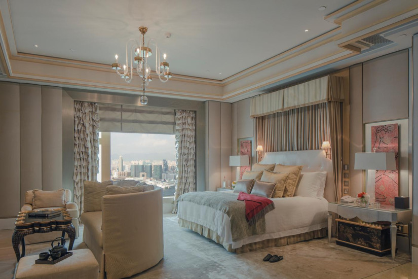 - 319 м2. Шикарный номер на 43 этаже состоит из фойе, спальни с кроватью king-size, гостиной, столовой на 10 персон, кабинета, мини-кухни, фитнес-комнаты с массажным столом, ванной комнаты с ванной, душем и парной, гостевой туалетной комнаты, вид на бухту Виктория и полуостров Коулун. Максимальное размещение – 3 взрослых или 2 взрослых + 1 ребенок. Гостям номера предоставляются услуги Executive Club.