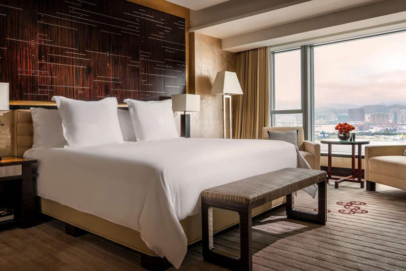 - 45 м2. Состоит из спальни с кроватью king-size или двумя кроватями twin, зоны отдыха, ванной комнаты. Вид на бухту Виктория и полуостров Коулун. Номера располагаются с 9 по 43 этаж. Максимальное размещение – 3 взрослых или 2 взрослых + 1 ребенок.