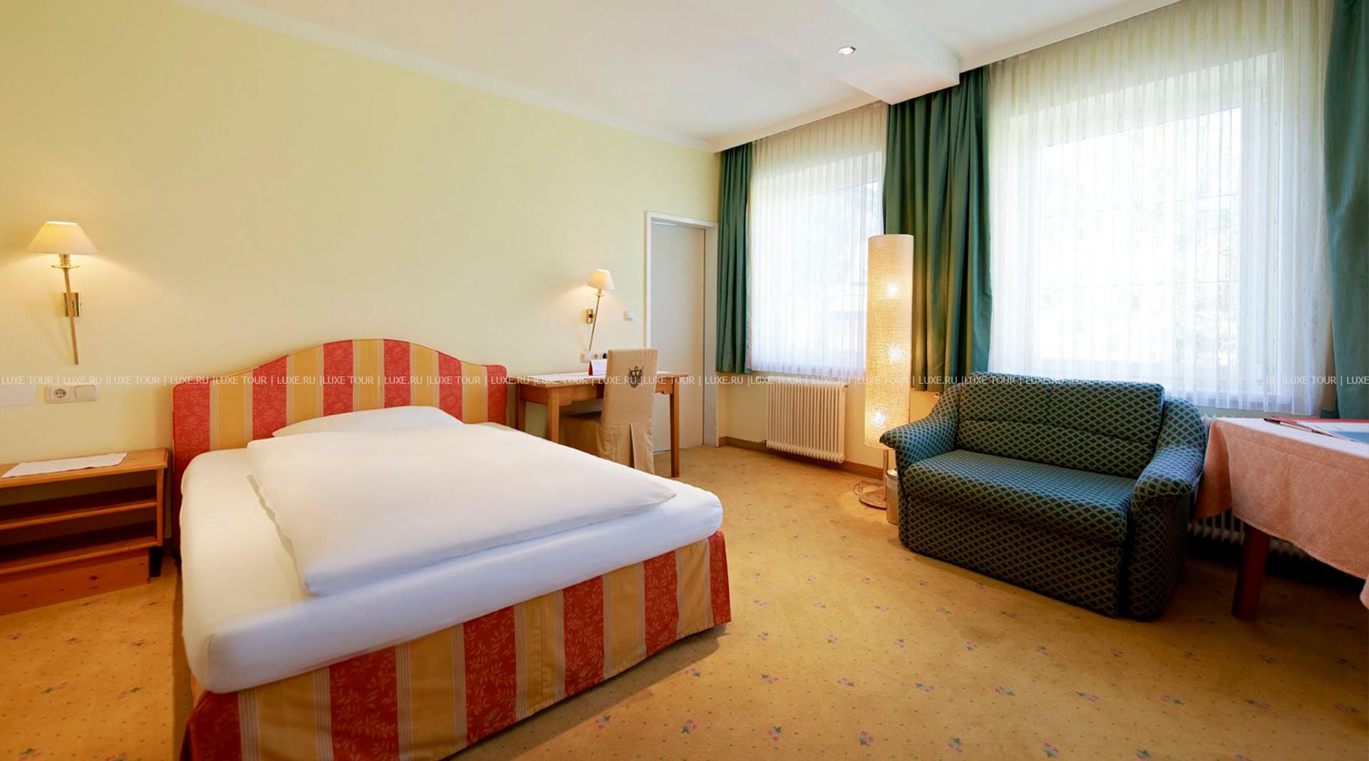Не забывают при этом в отеле и о важных усовершенствованиях. В гостинице есть собственный спа-центр, в котором предлагаются гидротерапевтические бассейны Kneipp, сауны, паровые бани, зоны отдыха, солярий и массажные кабинеты. Также к услугам гостей — 2 ресторана и бар.