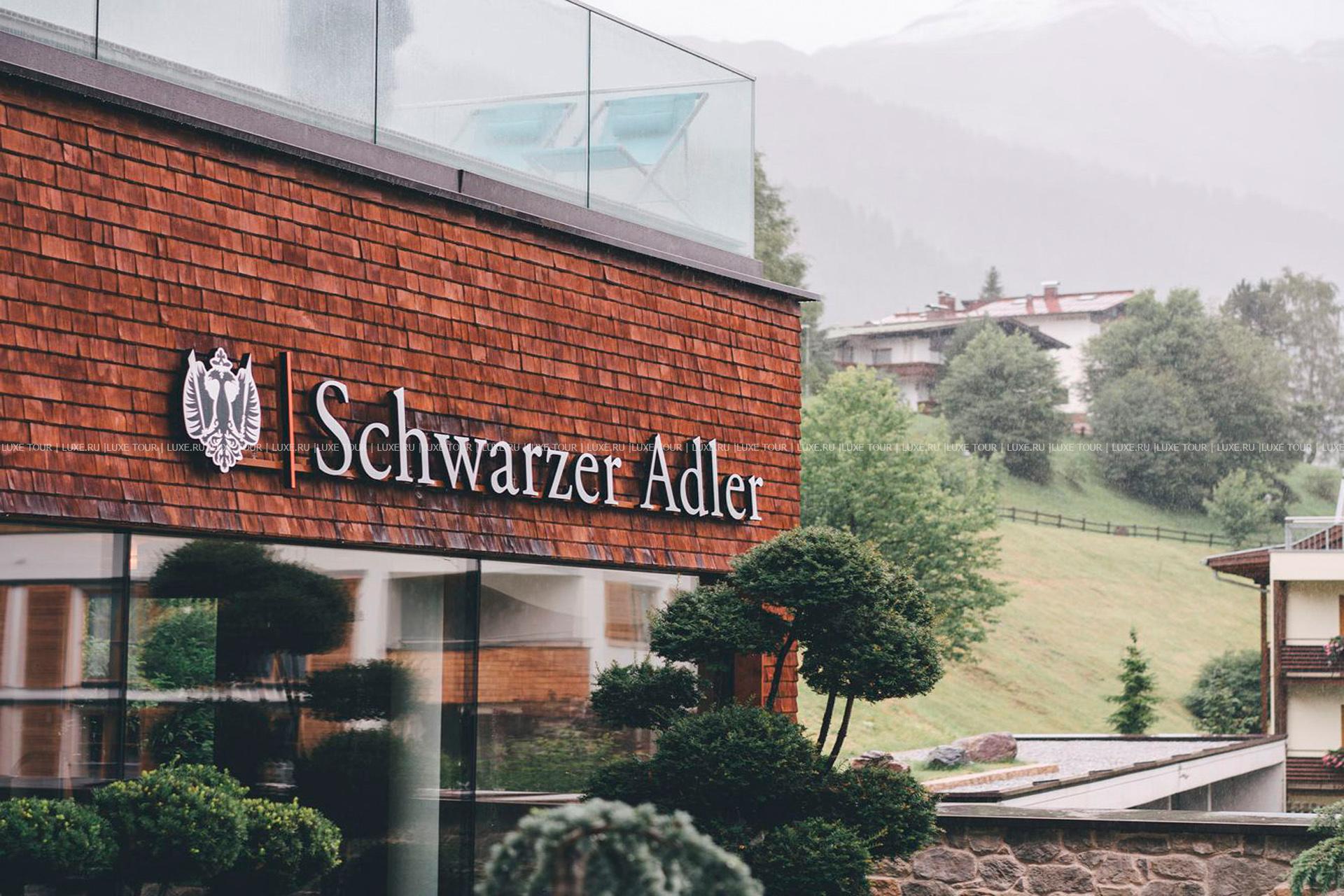 Один из первых отелей австрийских Альп Schwarzer Adler Hotel расположен в центре пешеходной зоны Санкт-Антона в непосредственной близости от подъемников. Здание, в котором сегодня размещается отель, было возведено еще в 1570 году рыцарями госпитальерами. Когда-то напротив находились конюшни для смены лошадей, а в самом особняке останавливались пассажиры почтовых дилижансов. Хотя за свою четырехсотлетнюю историю Schwarzer Adler Hotel сменил множество хозяев, и каждое поколение стремилось улучшить, обновить здание в соответствии с современными стилевыми традициями, все же стены особняка, по-прежнему, бережно хранят историю многолетние традиции. Интерьеры каждого номера гостиницы оформлены в индивидуальном стиле и украшены любовно отреставрированными фресками XVI века, гармонирующей с ними современной мебелью, мягкими коврами, живописными панно и оригинальными светильниками. Не забыты в Schwarzer Adler и другие старинные традиции. Так, в ресторане для приготовления блюд, как и прежде, используются продукты с собственной фермы, а в винном погребе хранятся лучшие вина с окрестных виноградников.