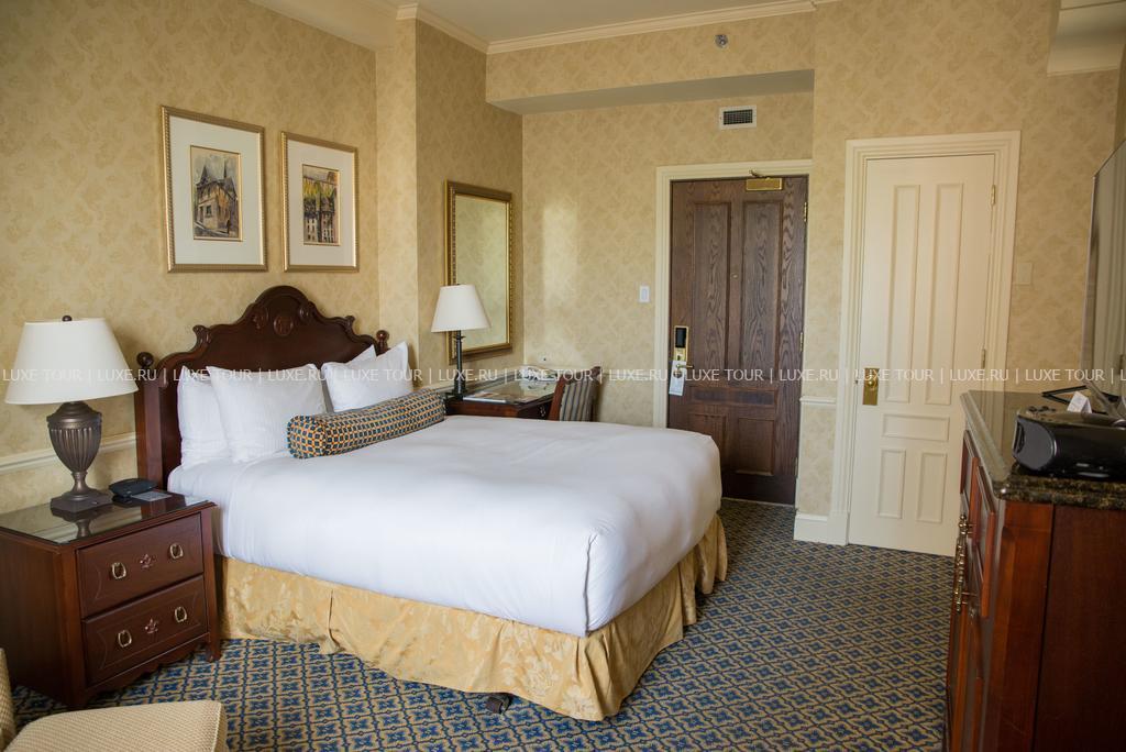 На крутом берегу реки St. Lawrence, в самом сердце Квебека - историческом Старом городе, возвышается величественный замок Fairmont Le Chateau Frontenac с многочисленными остроконечными башенками и монументальным фасадом, украшенном над входной аркой фамильным гербом графа Frontenac, в честь которого отель получил свое название. Fairmont Le Chateau Frontenac сочетает элементы архитектуры средневековья и эпохи Ренессанса. За более, чем столетнюю историю, гостями отеля были многие мировые знаменитости: Уинстон Черчилль, Франклин Д. Рузвельт, королева Елизавета, принцесса Монако Грейс, Шарль де Голль, Рональд Рейган, Жак Ширак, Альфред Хичкок. В комфортабельных номерах - изысканные интерьеры, выдержанные в теплых тонах и выполненные в классическом стиле старой Европы, с красиво драпированными шторами, дорогими коврами, элегантной мебелью, украшенные изящными предметами искусства и декоративными растениями. В отеле открыт Оздоровительный Центр, включающий крытый бассейн, детский бассейн, джакузи, сауну, тренажерный зал, массажные кабинеты. Помимо большого выбора зимних и летних спортивных развлечений для взрослых и детей в окрестностях отеля, для маленьких гостей в самом отеле предусмотрены специальные программы - например, уроки этикета во время традиционного чаепития с Madame Rose.