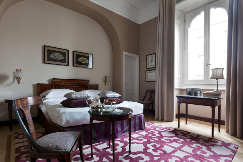 - 36 м2. Элегантный номер с видом на город или внутренний двор отеля, благодаря старинной мебели пронизан духом истории, в оформлении интерьера использованы произведения искусства. Состоит из спальни с кроватью queen-size, king-size или двумя кроватями twin, зоны отдыха и ванной комнаты, отделанной мрамором.