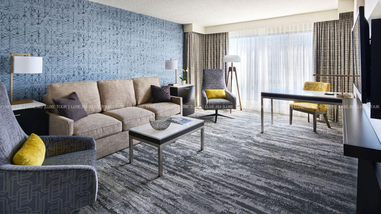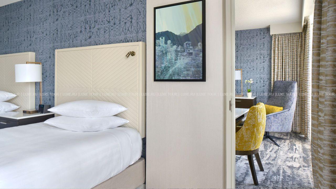 Белоснежная башня Hyatt Regency возвышается в деловом центре Ванкувера, рядом с основными достопримечательностями города. В номерах, оборудованных по последнему слову техники, - стильные современные интерьеры в теплых тонах с преобладанием палевых оттенков, с ковровым покрытием на полах, отделкой из панелей темного дерева, изящной удобной мебелью, большими, во всю стену, окнами с великолепным видом на город, в некоторых номерах есть балконы. В отеле открыт Оздоровительный Центр с открытым подогреваемым бассейном, джакузи, тренажерным залом. В элегантном ресторане Mosaic Bar & Grille предлагается разнообразие блюд современной международной кухни, а также блюда, приготовленные из местных морепродуктов, в Latte Cafe & Bistro подаются ароматный кофе, различные напитки, горячие и холодные закуски.