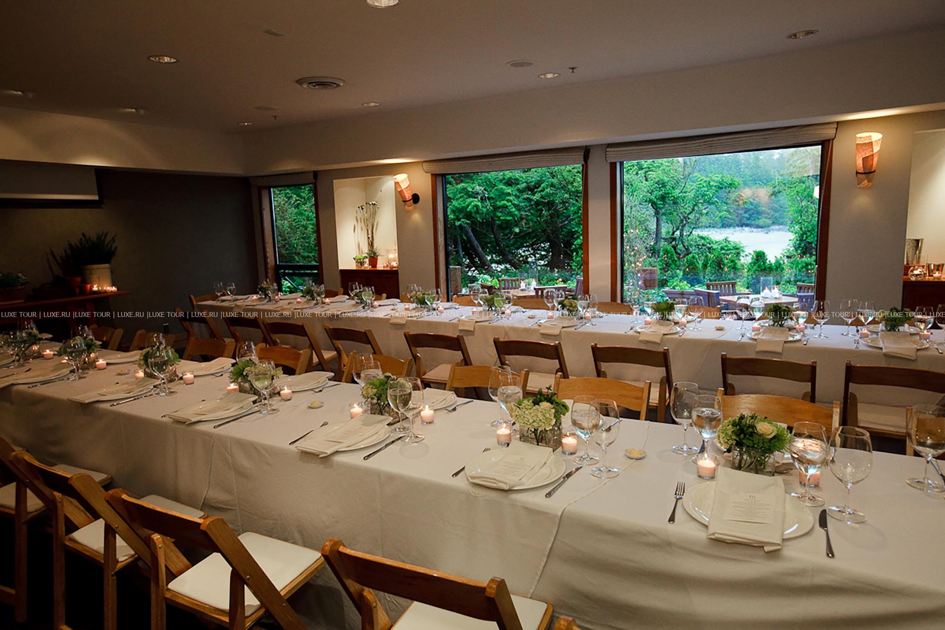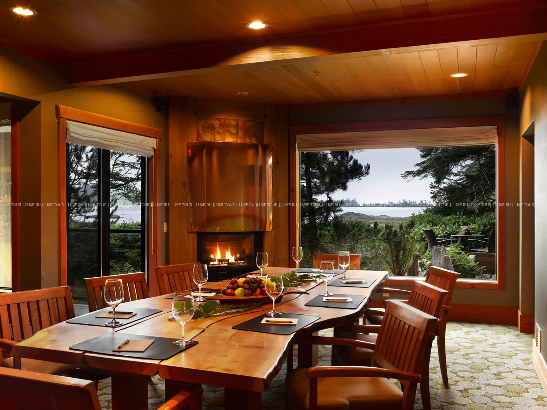 В элегантном ресторане Pointe с потрясающим панорамным видом на океан, предлагается разнообразие блюд кухни северо-западного тихоокеанского побережья, приготовленных из отборных местных продуктов и в сопровождении богатой карты изысканных вин, а уютное кафе Driftwood Lounge с камином – приятное место для отдыха, здесь подаются различные напитки, ароматный кофе и легкие закуски. К услугам гостей – современно оснащенный конференц-зал, библиотека, мастерская художественной резьбы по дереву, где можно понаблюдать за работой авторов, автомобильная парковка. The Wickaninnish Inn – это элегантный комфорт, разнообразие услуг и уникальное расположение среди неповторимой по красоте девственной природы тихоокеанского побережья.