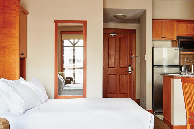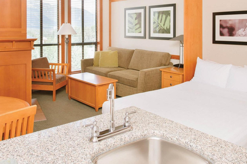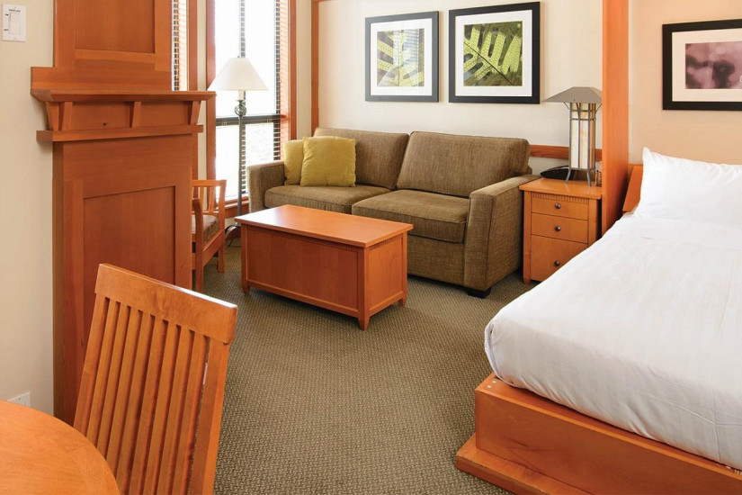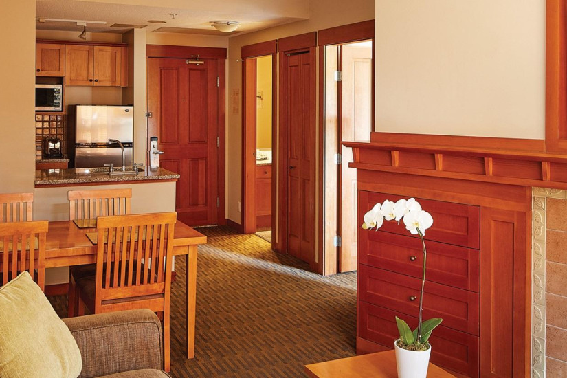 В отеле 121 комфортабельный номер категории Suite, включая Studio Suite, One Bedroom Suite, Two Bedroom Suite. В номерах – современные интерьеры в светлых тонах, с мягким освещением, ковровым покрытием на полах, отделкой из дерева, удобной мебелью, элегантными газовыми каминами в просторных гостиных, оборудованными кухнями, уютными балконами с прекрасным видом на горные ландшафты.