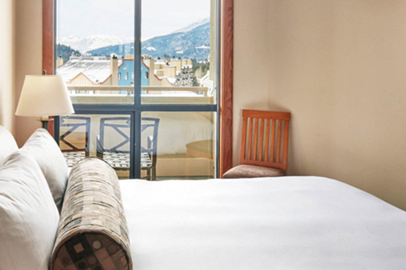- 75 м2. Состоит из двух спален, в одной спальне кровать king size, во второй кровать queen size, гостиной комнаты с камином и диваном, полностью оборудованной кухни с обеденной зоной, двух ванных комнат, балкона. Номер расположен на верхних этажах с видом на долину и деревню Whistler Village.