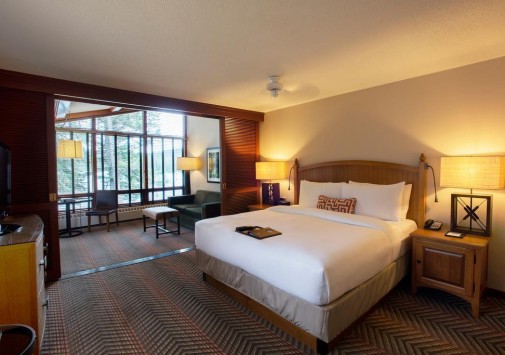 Среди пышной зелени Национального парка Джаспер, в окружении живописных склонов Скалистых гор, на берегу красивейшего горного озера Lac Beauvert, расположился комплекс The Fairmont Jasper Park Lodge, похожий на сказочную деревушку. Отель ведет свою историю с 1915 года, когда здесь был лишь небольшой палаточный городок, - сегодня вместо нескольких палаток среди восхитительной природы расположились уютные деревянные коттеджи в стиле альпийских шале, с комфортабельными условиями 21 века. В номерах – элегантные классические интерьеры в теплых тонах, с отделкой и удобной мебелью из натурального дерева, тщательно продуманными элементами декора, из номеров открывается великолепный вид на Скалистые горы, лес и живописное озеро Lac Beauvert.