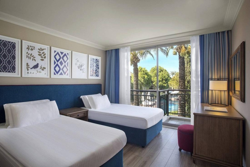 - 26 м2. Состоит из спальни с кроватью king-size или двух кроватей twin, ванной комнаты, балкона или террасы. Специальные номера для людей с ограниченными возможностями. Максимальное размещение — 2 человека.