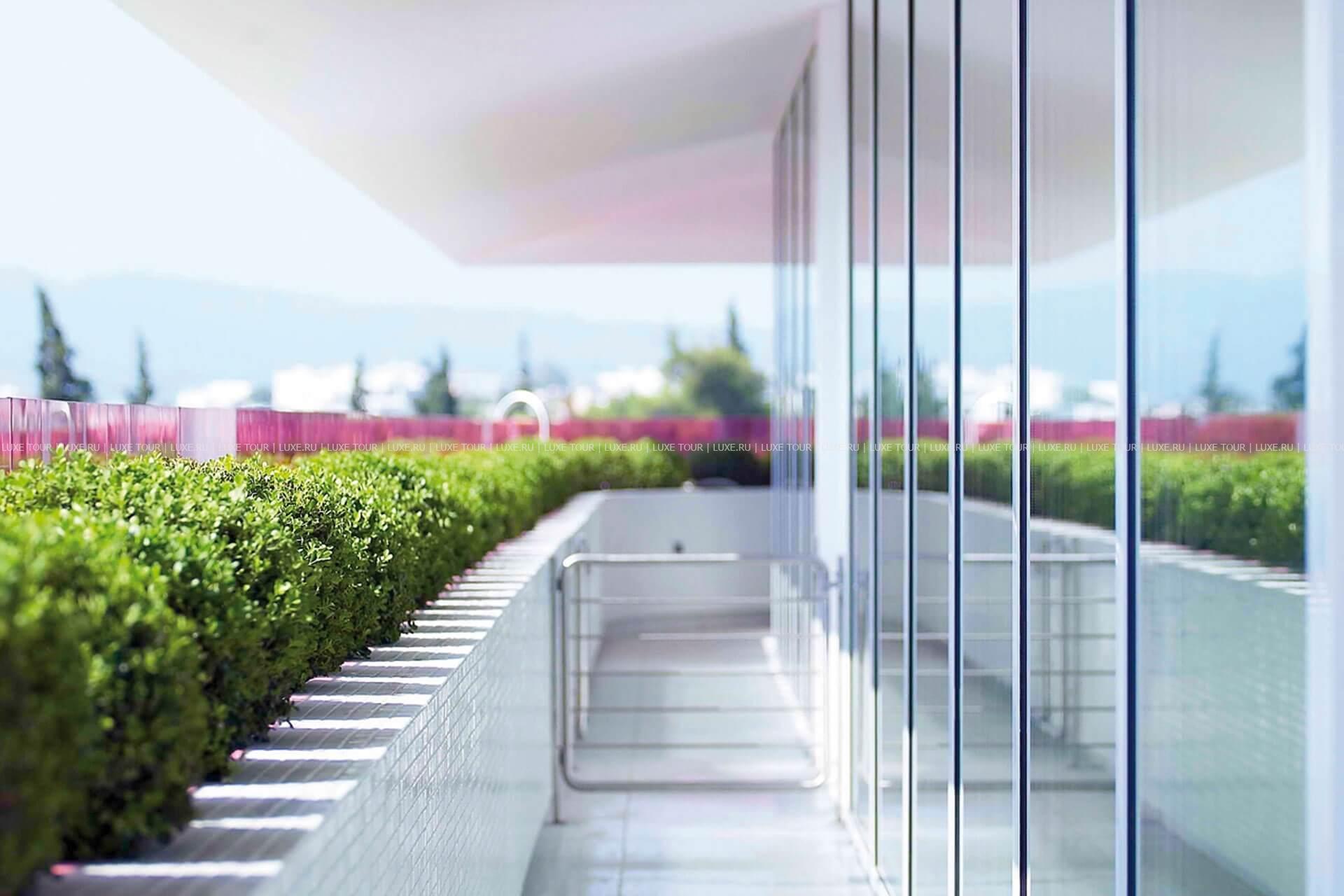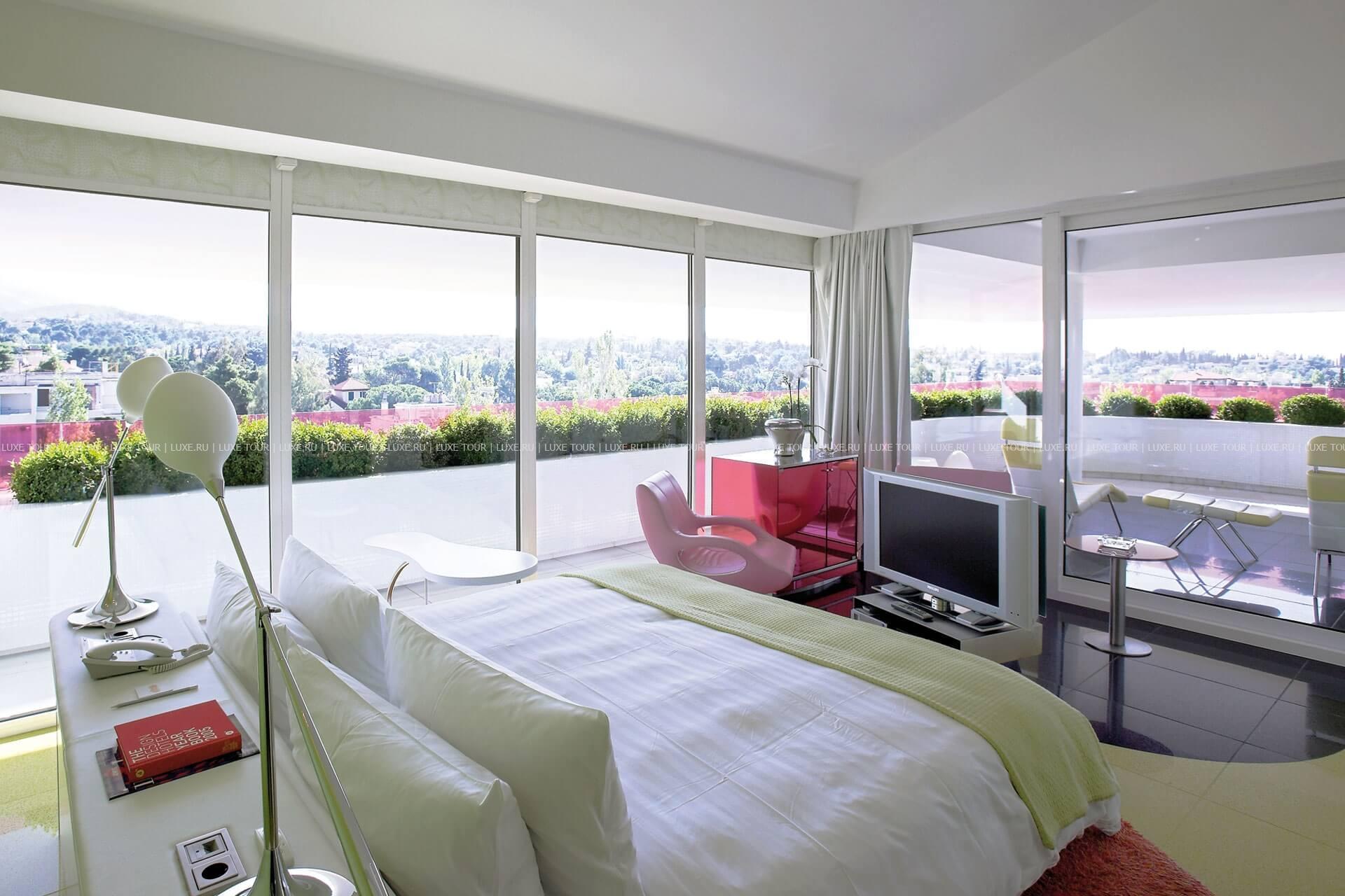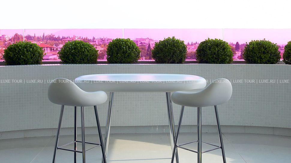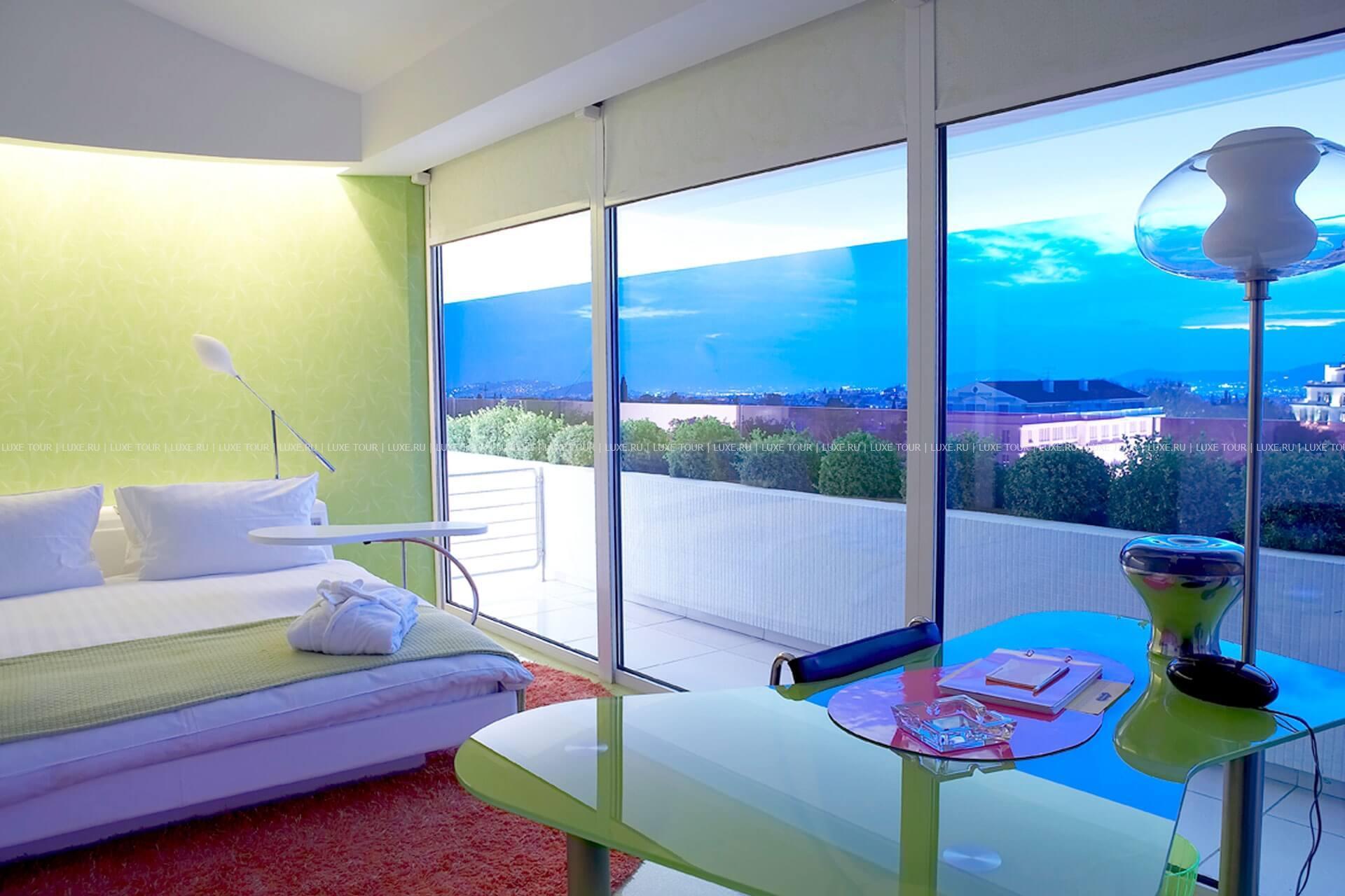В номерах — стильные интерьеры, выполненные в яркой цветовой гамме, отделанные и оборудованные по новейшим технологиям, с оригинальной дизайнерской мебелью и декором, отражающим тенденции современного искусства, а с балконов и террас открывается живописный вид на окружающие ландшафты. Отель располагает Оздоровительным Центром, включающим открытый дизайнерский бассейн, выложенный мозаикой и окруженный террасой для отдыха и принятия солнечных ванн, тренажерный зал, турецкую баню, а также процедурные кабинеты, предлагающие большой выбор услуг по уходу за лицом и телом с использованием продукции известной косметической линии Decleor.