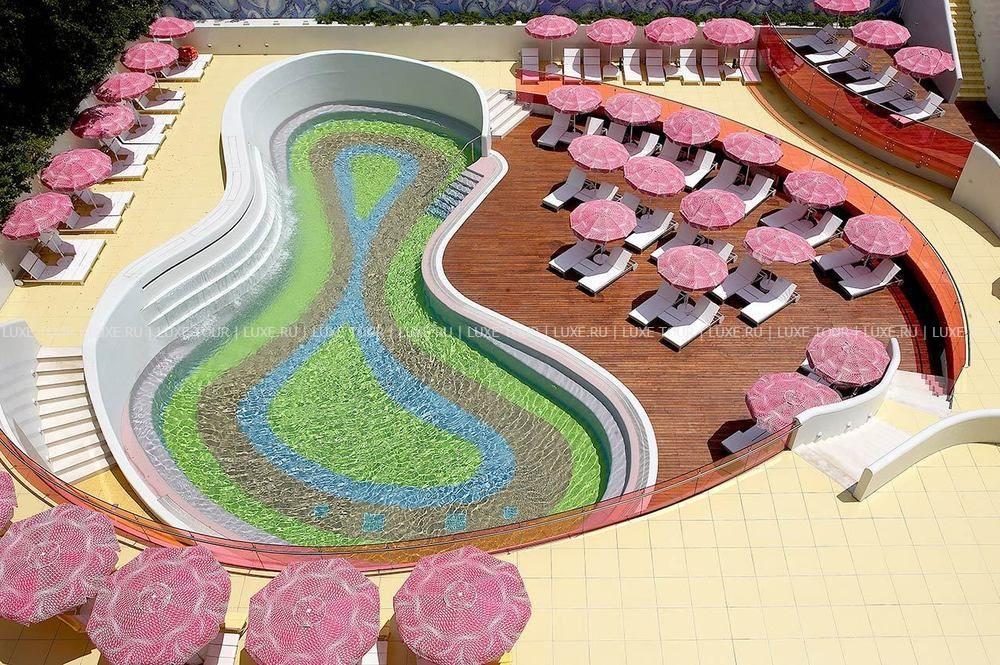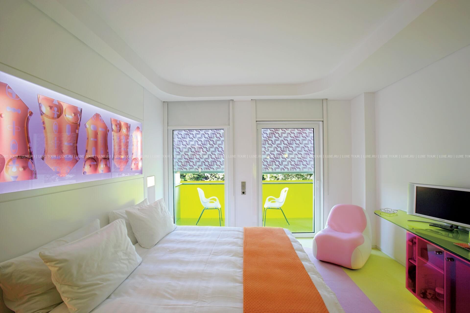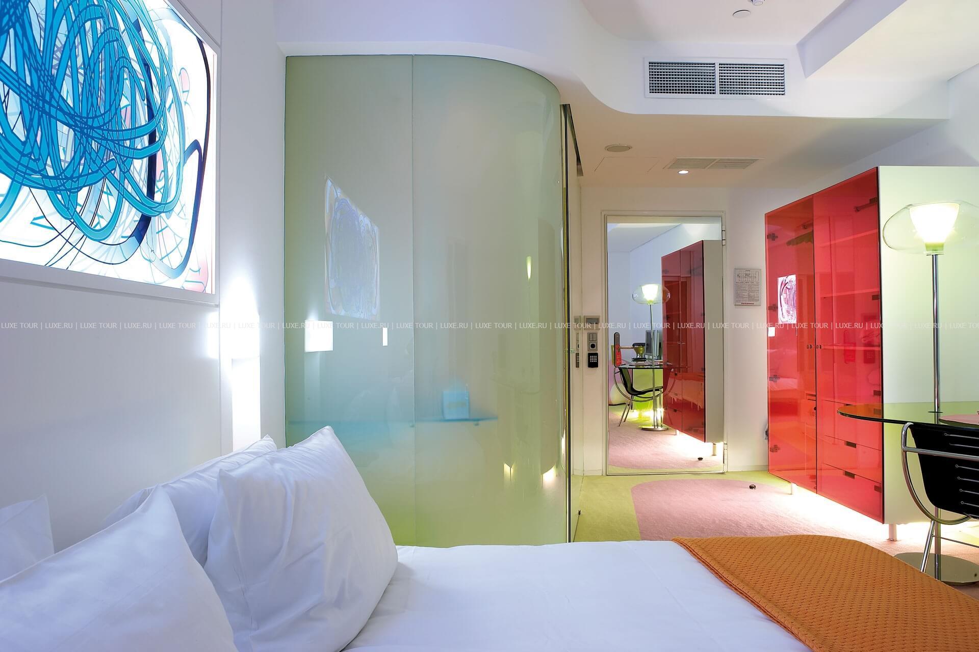 В номерах — стильные интерьеры, выполненные в яркой цветовой гамме, отделанные и оборудованные по новейшим технологиям, с оригинальной дизайнерской мебелью и декором, отражающим тенденции современного искусства, а с балконов и террас открывается живописный вид на окружающие ландшафты. Отель располагает Оздоровительным Центром, включающим открытый дизайнерский бассейн, выложенный мозаикой и окруженный террасой для отдыха и принятия солнечных ванн, тренажерный зал, турецкую баню, а также процедурные кабинеты, предлагающие большой выбор услуг по уходу за лицом и телом с использованием продукции известной косметической линии Decleor.