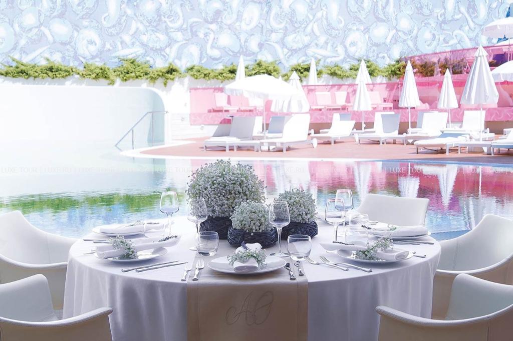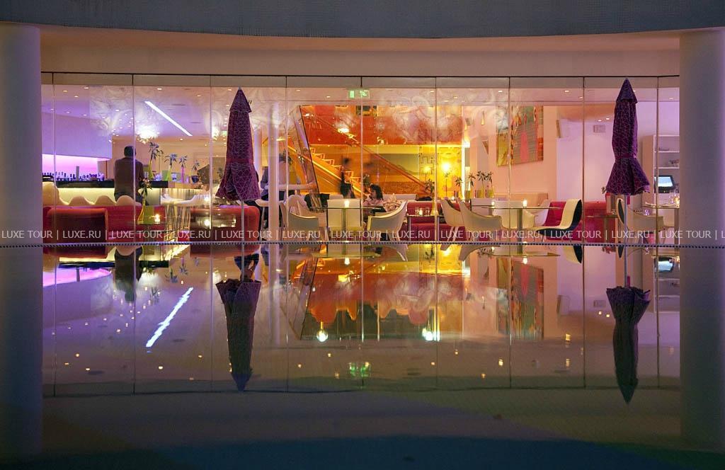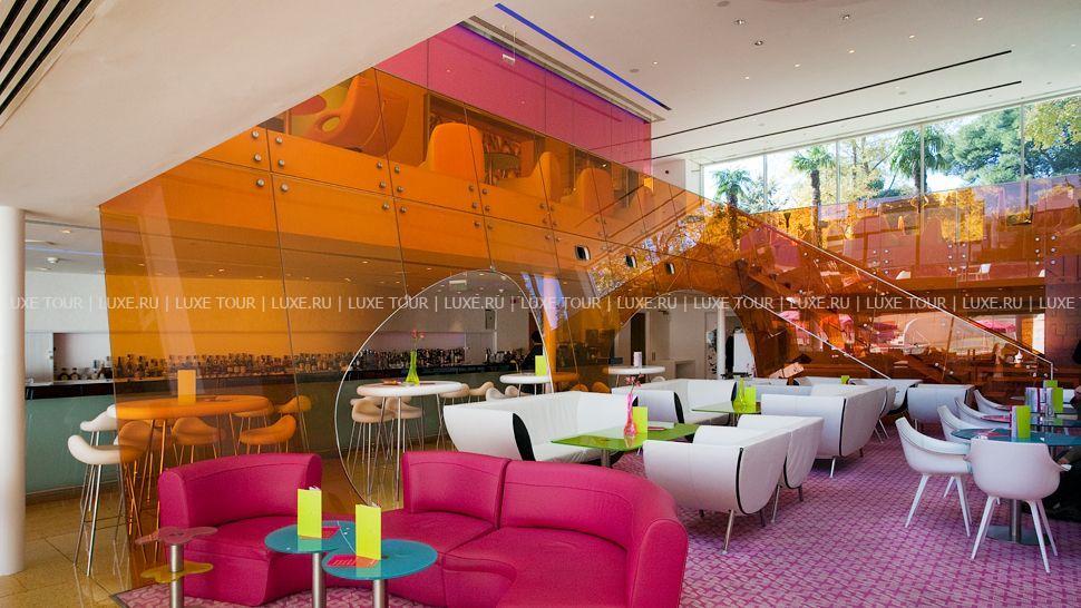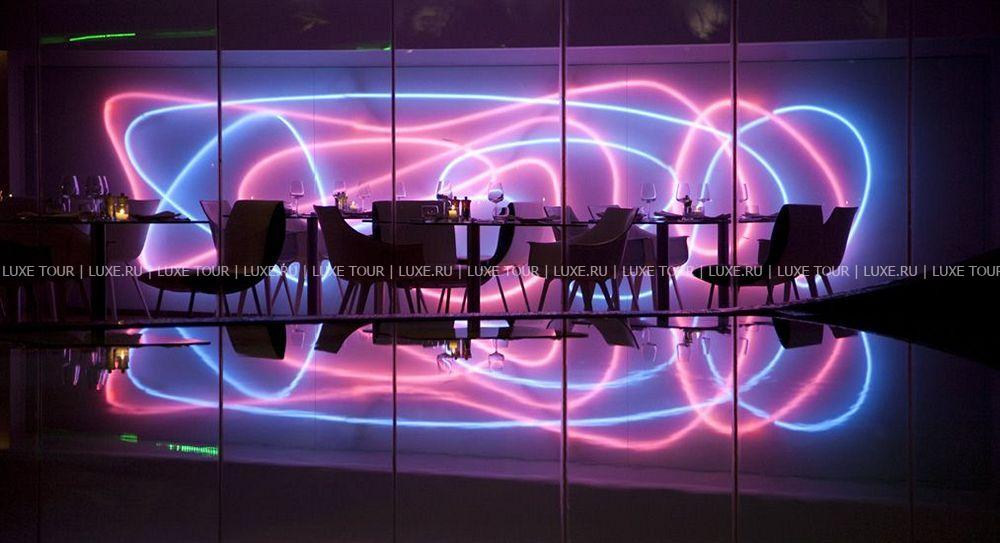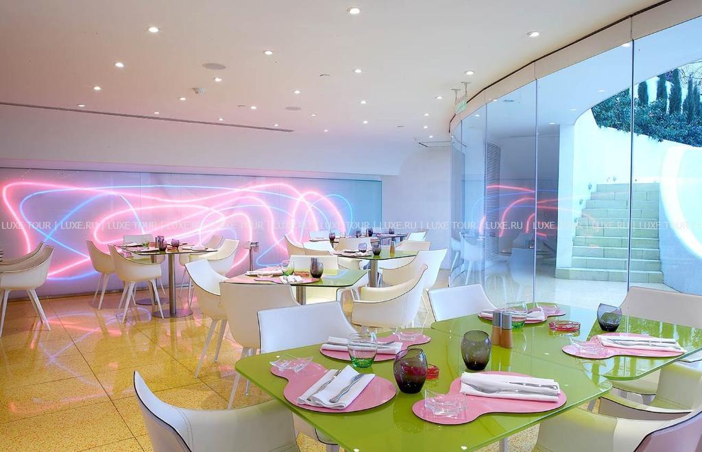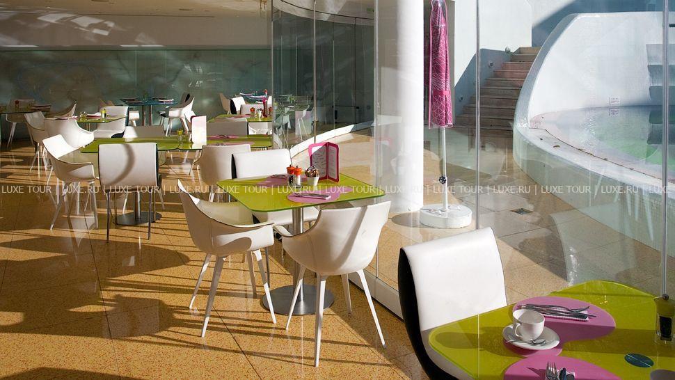 Изысканный ресторан отеля, украшенный произведениями современного дизайнерского искусства, предлагает разнообразие блюд средиземноморской и интернациональной кухонь. Здесь же расположены: бар, где приятно выпить вечерний коктейль и послушать музыку, кафе в лобби, открытое в течение всего дня, а также открытая веранда у бассейна.