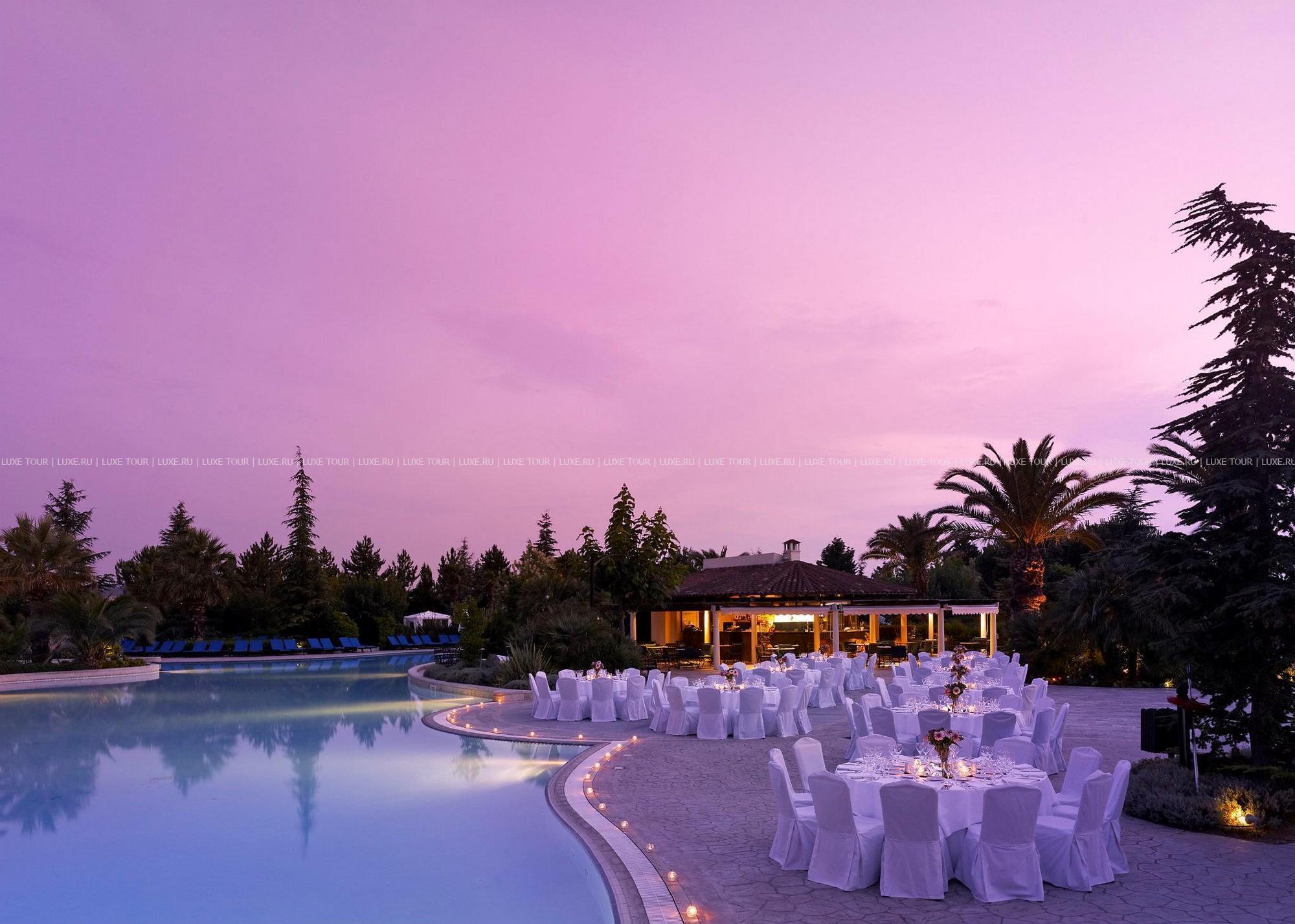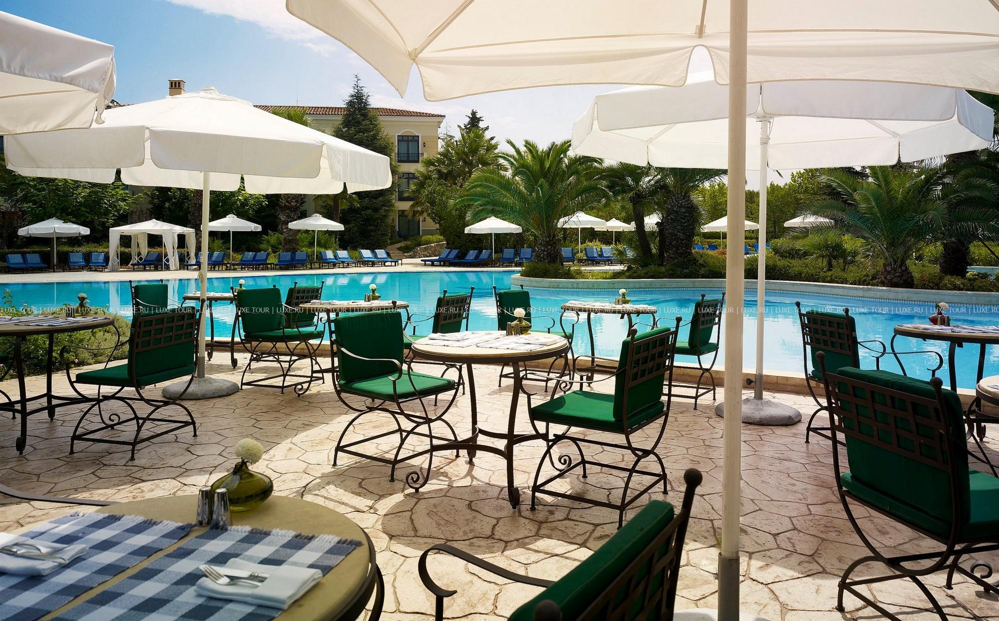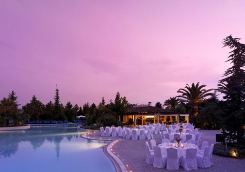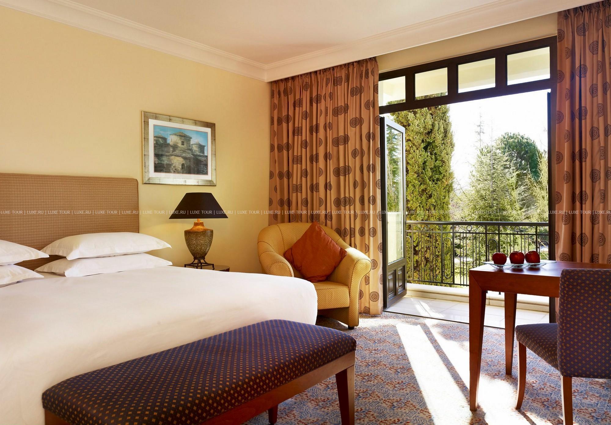 Небольшие, с яркими красными крышами, уютные здания фешенебельного комплекса Hyatt Regency Thessaloniki расположены среди пышного тропического сада, в 20 минутах езды от центра города Салоники, недалеко от знаменитого казино Regency. В просторных комфортабельных номерах — элегантные интерьеры в теплых тонах, сочетающие современный стиль и традиционные греческие мотивы, с изящной мебелью, оригинальными украшениями, балконами и террасами с чудесным видом на пышные тропические сады, бассейн и горные склоны. В отеле открыт Оздоровительный центр Club Olympus с крытым подогреваемым бассейном, джакузи, саунами, парными, тренажерным залом, комнатой отдыха и массажными кабинетами. На территории Hyatt Regency Thessaloniki находятся открытый бассейн-лагуна площадью 1200 кв.м, окруженный пышной зеленью и живописными водопадами, детский бассейн, 2 освещаемых теннисных корта, сквош-корт с кондиционером. В ресторане Ambrosia можно не только отведать разнообразные блюда средиземноморской кухни, а также блюда сезонного меню, приготовленные из свежайших продуктов, но и понаблюдать за не простым искусством их приготовления.