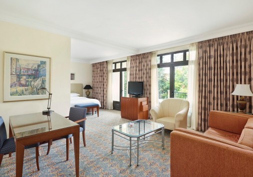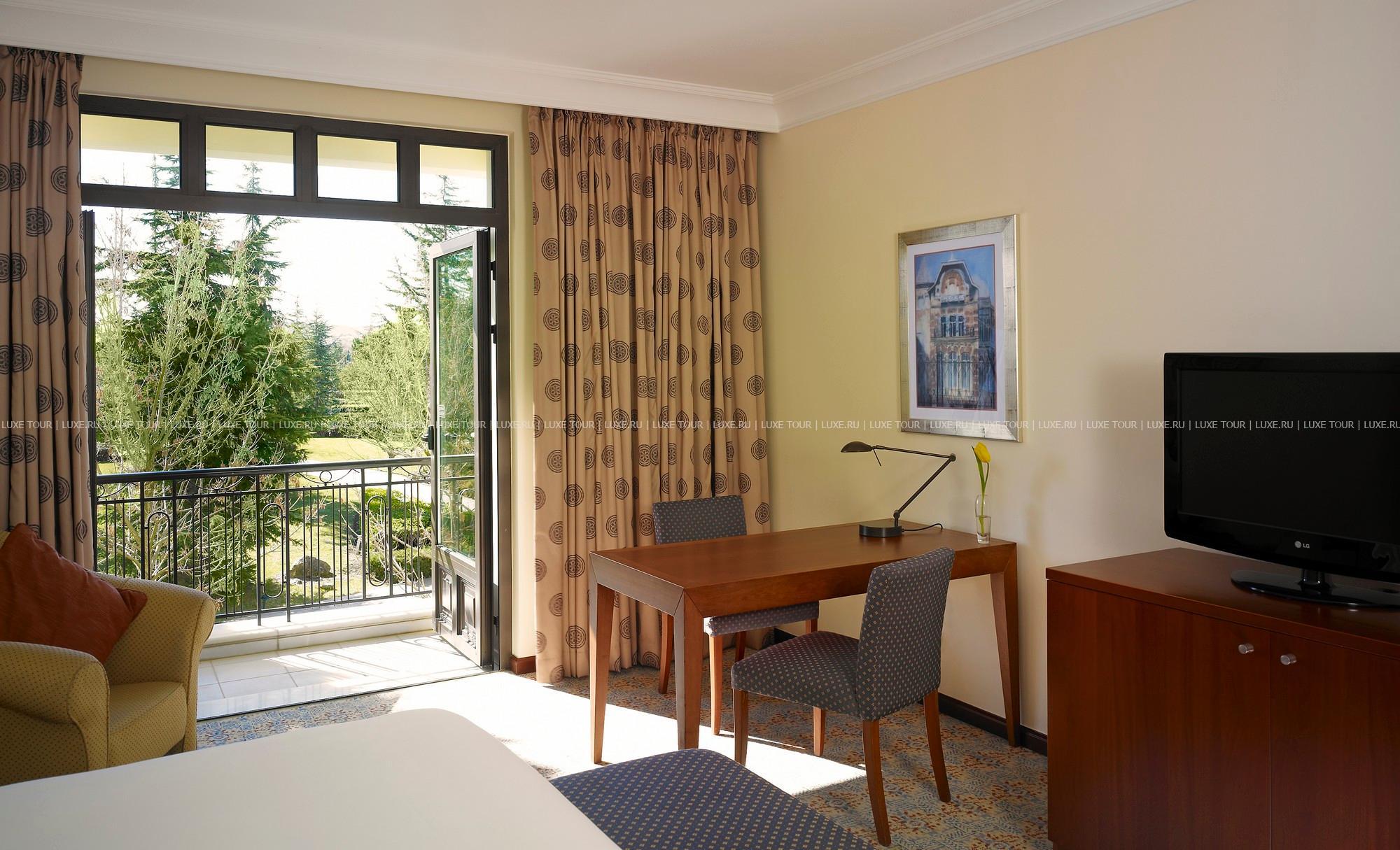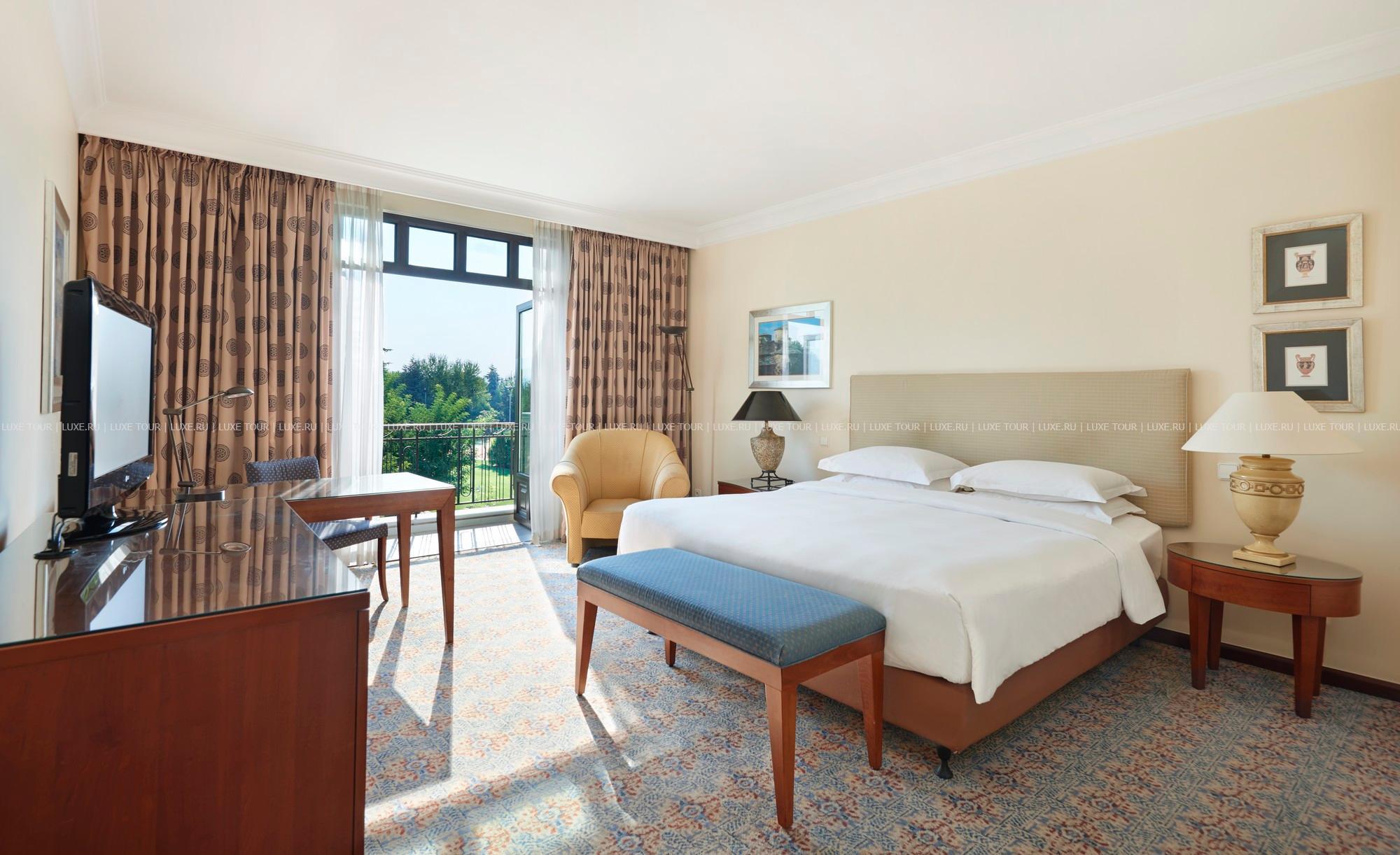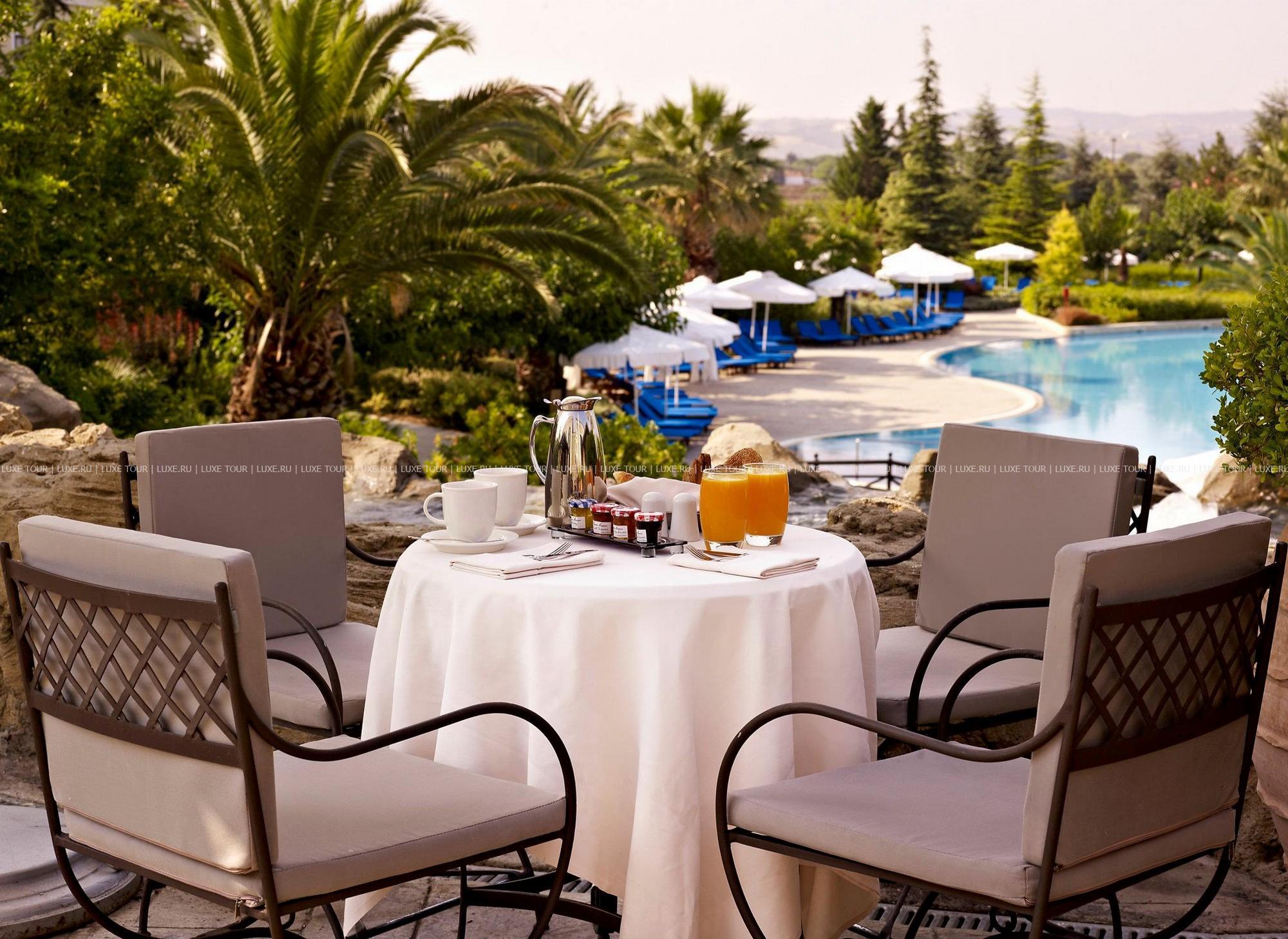 Небольшие, с яркими красными крышами, уютные здания фешенебельного комплекса Hyatt Regency Thessaloniki расположены среди пышного тропического сада, в 20 минутах езды от центра города Салоники, недалеко от знаменитого казино Regency. В просторных комфортабельных номерах — элегантные интерьеры в теплых тонах, сочетающие современный стиль и традиционные греческие мотивы, с изящной мебелью, оригинальными украшениями, балконами и террасами с чудесным видом на пышные тропические сады, бассейн и горные склоны. В отеле открыт Оздоровительный центр Club Olympus с крытым подогреваемым бассейном, джакузи, саунами, парными, тренажерным залом, комнатой отдыха и массажными кабинетами. На территории Hyatt Regency Thessaloniki находятся открытый бассейн-лагуна площадью 1200 кв.м, окруженный пышной зеленью и живописными водопадами, детский бассейн, 2 освещаемых теннисных корта, сквош-корт с кондиционером. В ресторане Ambrosia можно не только отведать разнообразные блюда средиземноморской кухни, а также блюда сезонного меню, приготовленные из свежайших продуктов, но и понаблюдать за не простым искусством их приготовления.