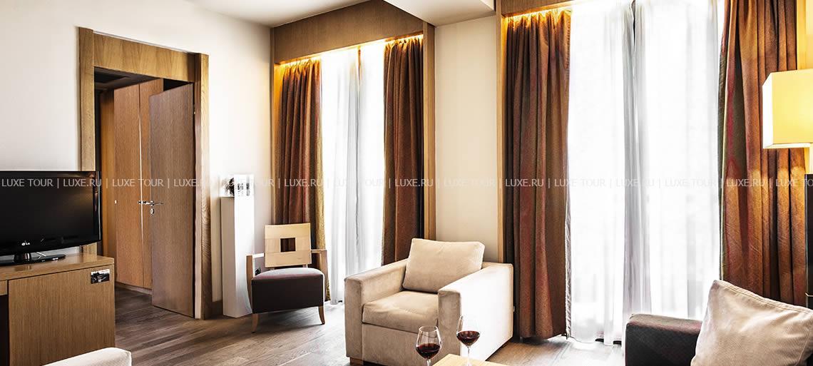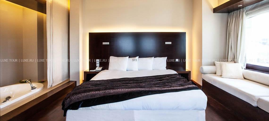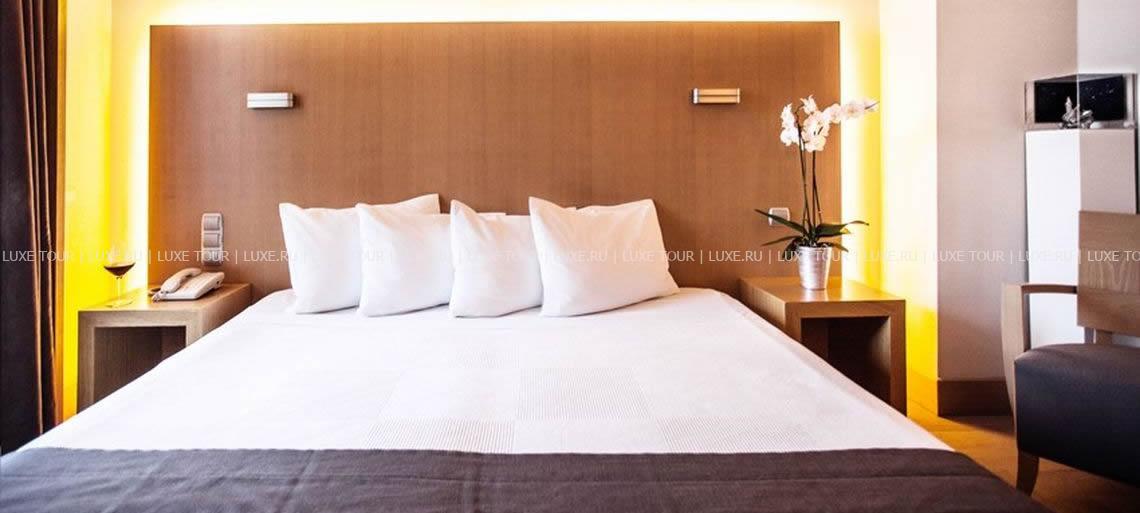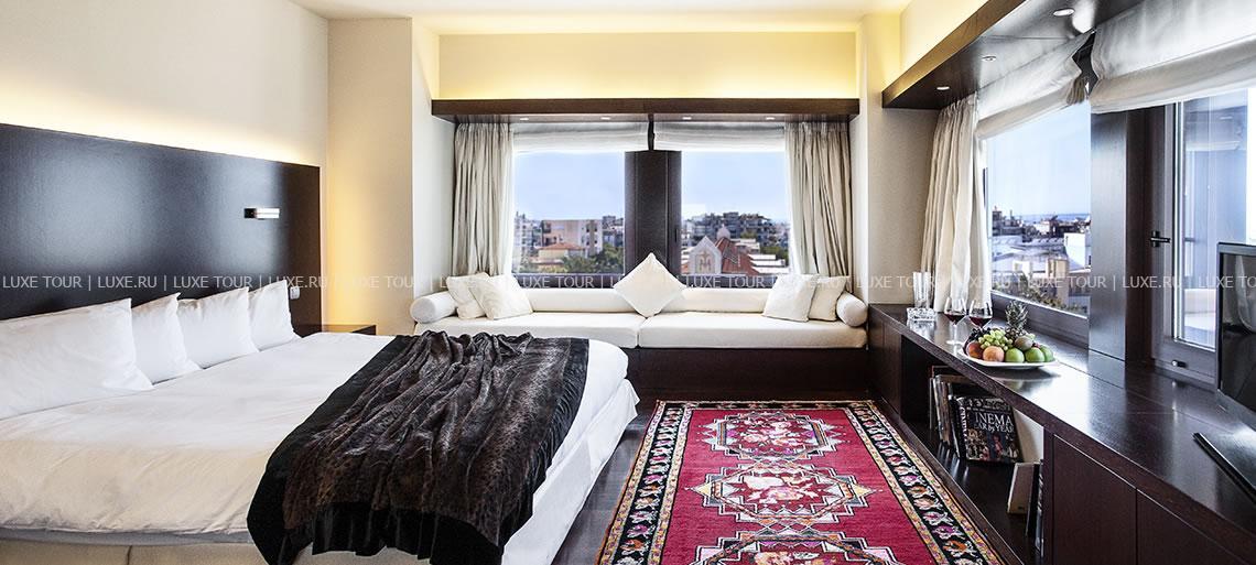 Современное здание Lazart Hotel расположено в 10 минутах езды от центра города Салоники, напротив знаменитого культурного центра Moni Lazariston. Помещения отеля отражают утонченный вкус и необычные дизайнерские решения. В комфортабельных номерах — стильные современные интерьеры, выдержанные в теплых пастельных тонах, с удобной мебелью, оригинальным декором и мягким натуральным освещением. В отеле имеется открытый бассейн, окруженный террасой с пышной зеленью сада и баром, Оздоровительный центр с тренажерным залом, сауной, джакузи и массажным кабинетом. Атмосфера бара Papa, названного в честь Хемингуэя (так его часто звали друзья), навеяна далекой Кубой. Здесь предлагается большой выбор солодового виски, коньяков, изысканных вин, дайкири, и, конечно, ароматных кубинских сигар.