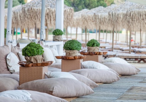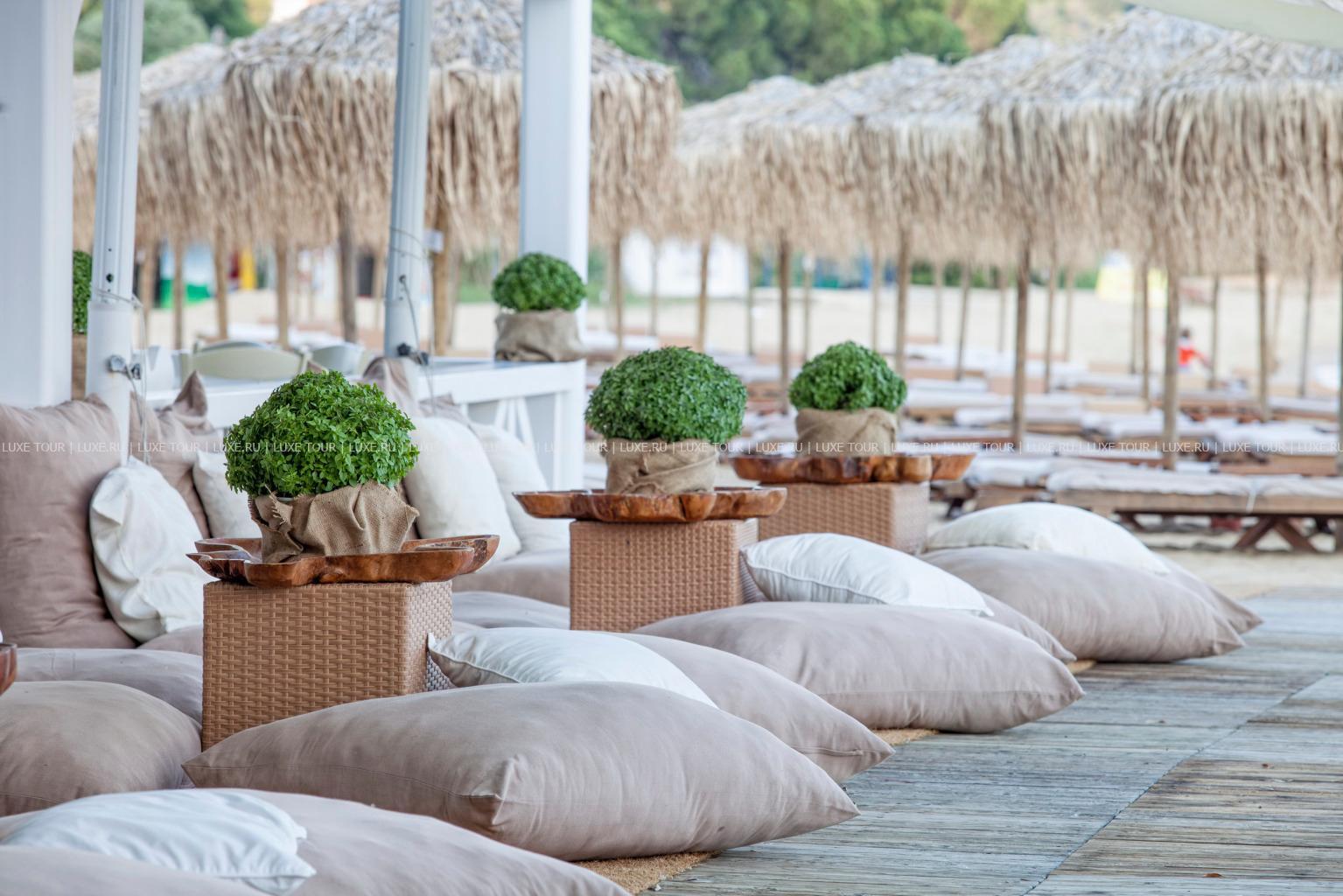 Отель расположен рядом с песчаным пляжем, оборудованным шезлонгами и зонтиками от солнца.