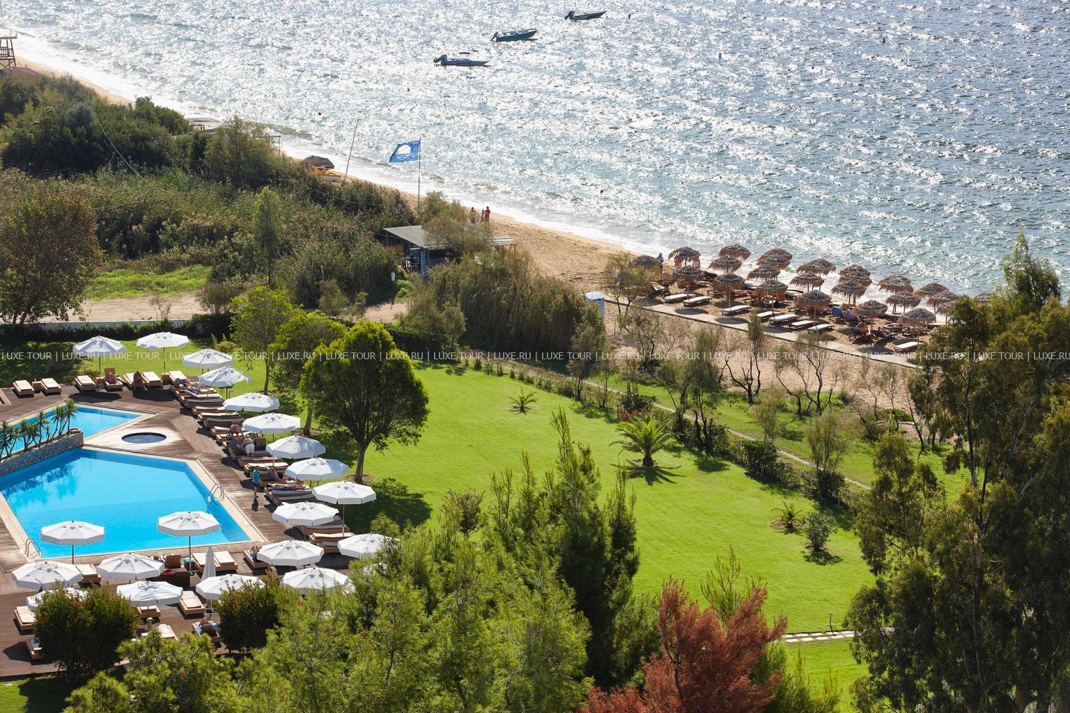 Отель расположен к востоку от побережья Греции, на острове Скиатос, входящем в группу островов Северные Спорады, в 8 км от города Скиатос и в 20 минутах езды от аэропорта.